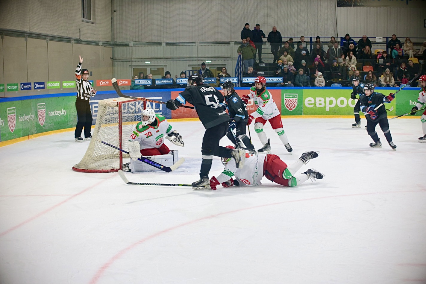 Шайбы: А.Середа (2), Пашкевич, О.Рудаковский, Я.Коробов, Чайчиц, Старинский – Ходько, А.Жук