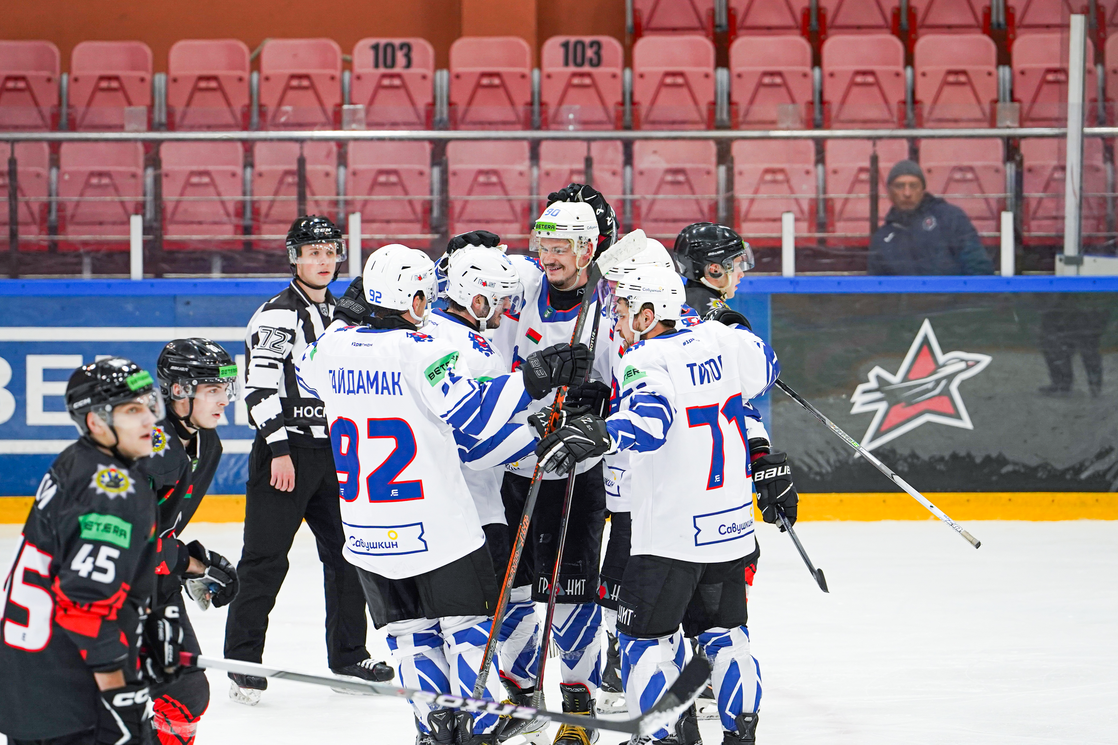 БРЕСТ: Городецкий (16:09), Бронников (43:23); Знахаренко (А) – Дубровцев, Титов – Гайдамак – Кулиев; Мартынюк – А. Кравчук; Никитич – Мельников – Середа; Е. Иванов – Косинский, Селивоник – Качан (К) – Жигалов; Петручик – Филанович, Аксенов – К. Никулин (А) – Панамаренко.