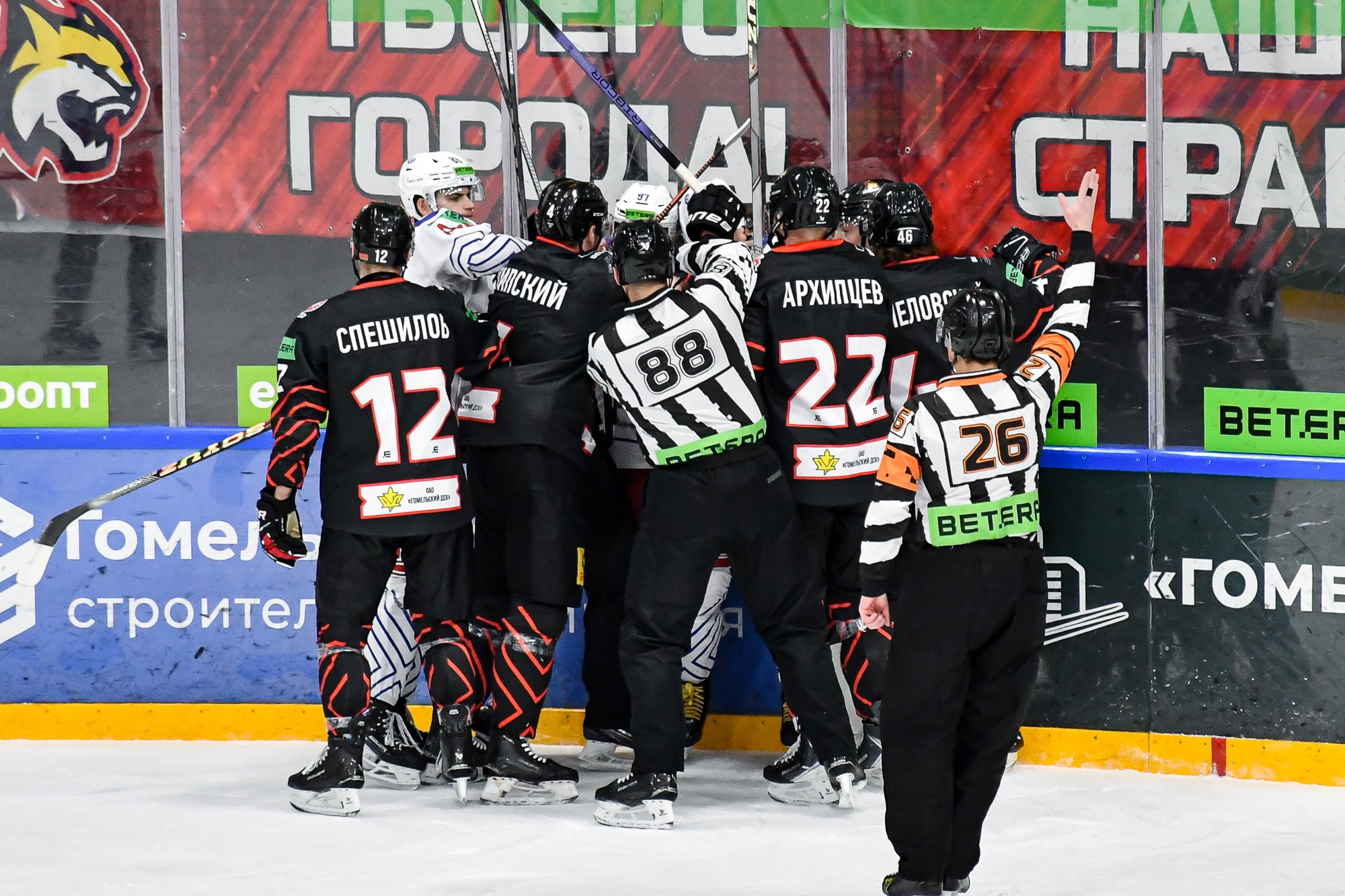 ГОМЕЛЬ: Кузмаул (59:20); Мальцев – Д.Р.Липский, Качеловский – Кораблев – Сироткин; Хоромандо (К) – Жихарев, Секерин – Субхи (А) – Войтович; Иванчиков – Стасенко, Вахильчук – Сусло (А) – Сапельников; Бовин – Спешилов – Собко; Архипцев, Пономарцев.