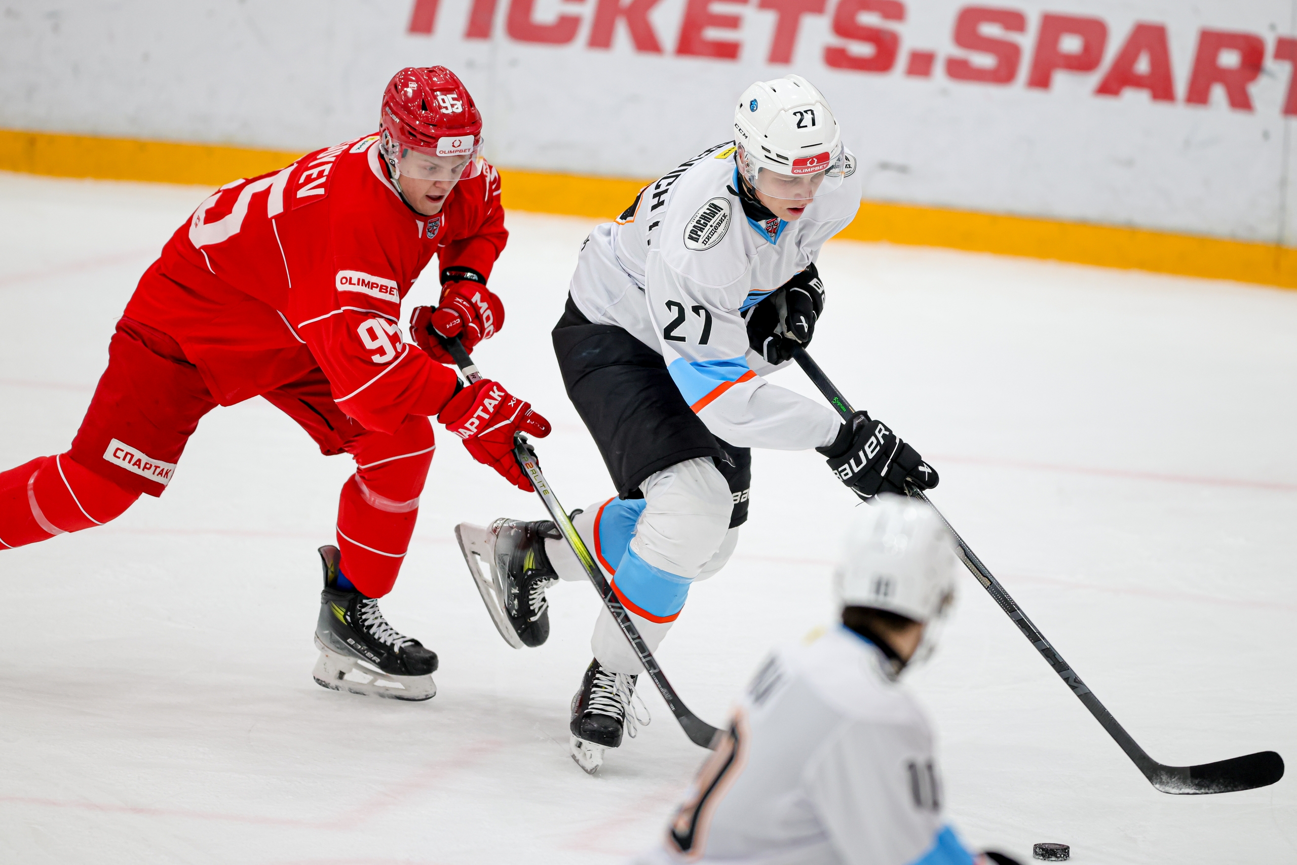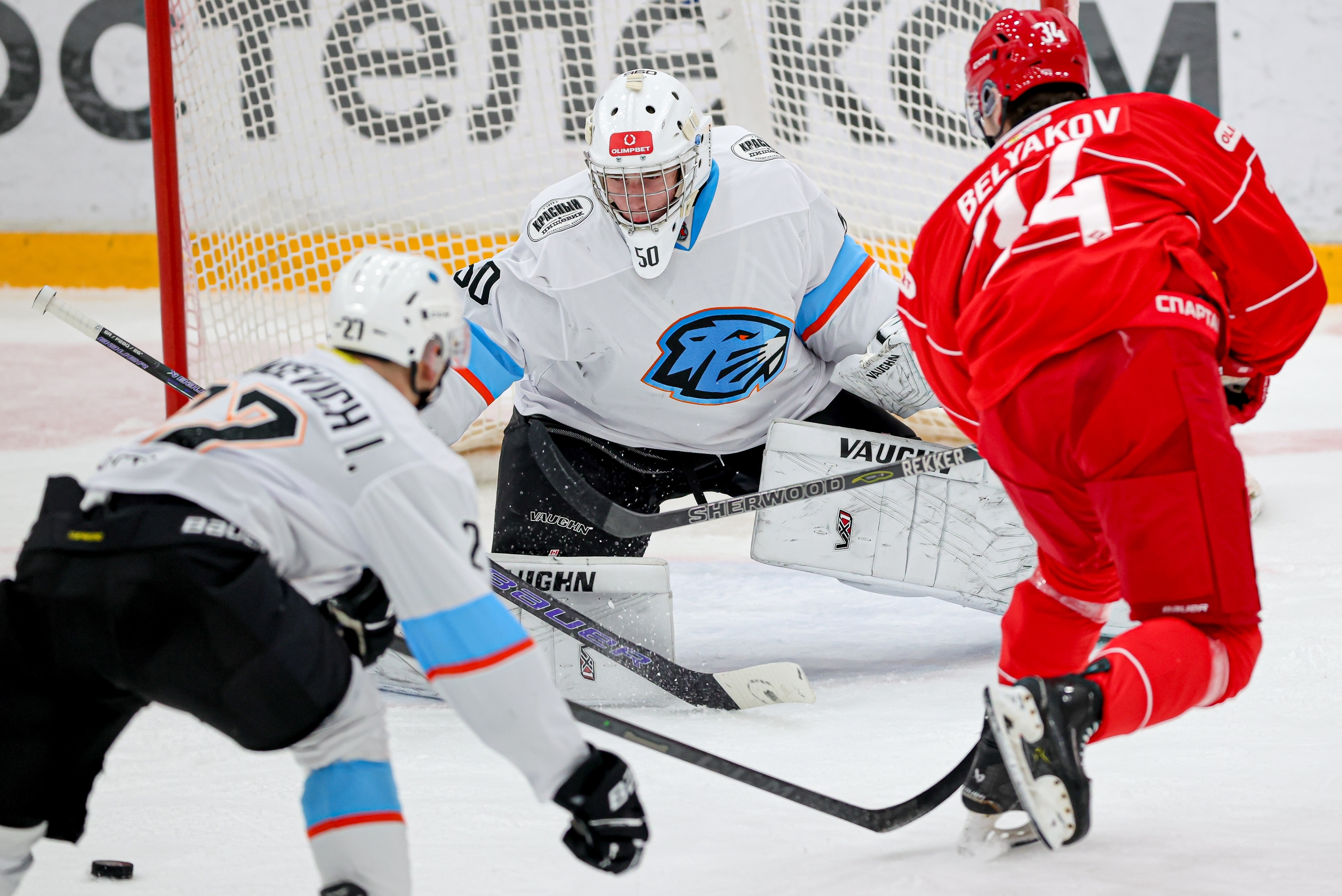 В воротах: 30. Кузьменко Ярослав (МХК Спартак).50. Русакович Даниил (Динамо-Шинник).