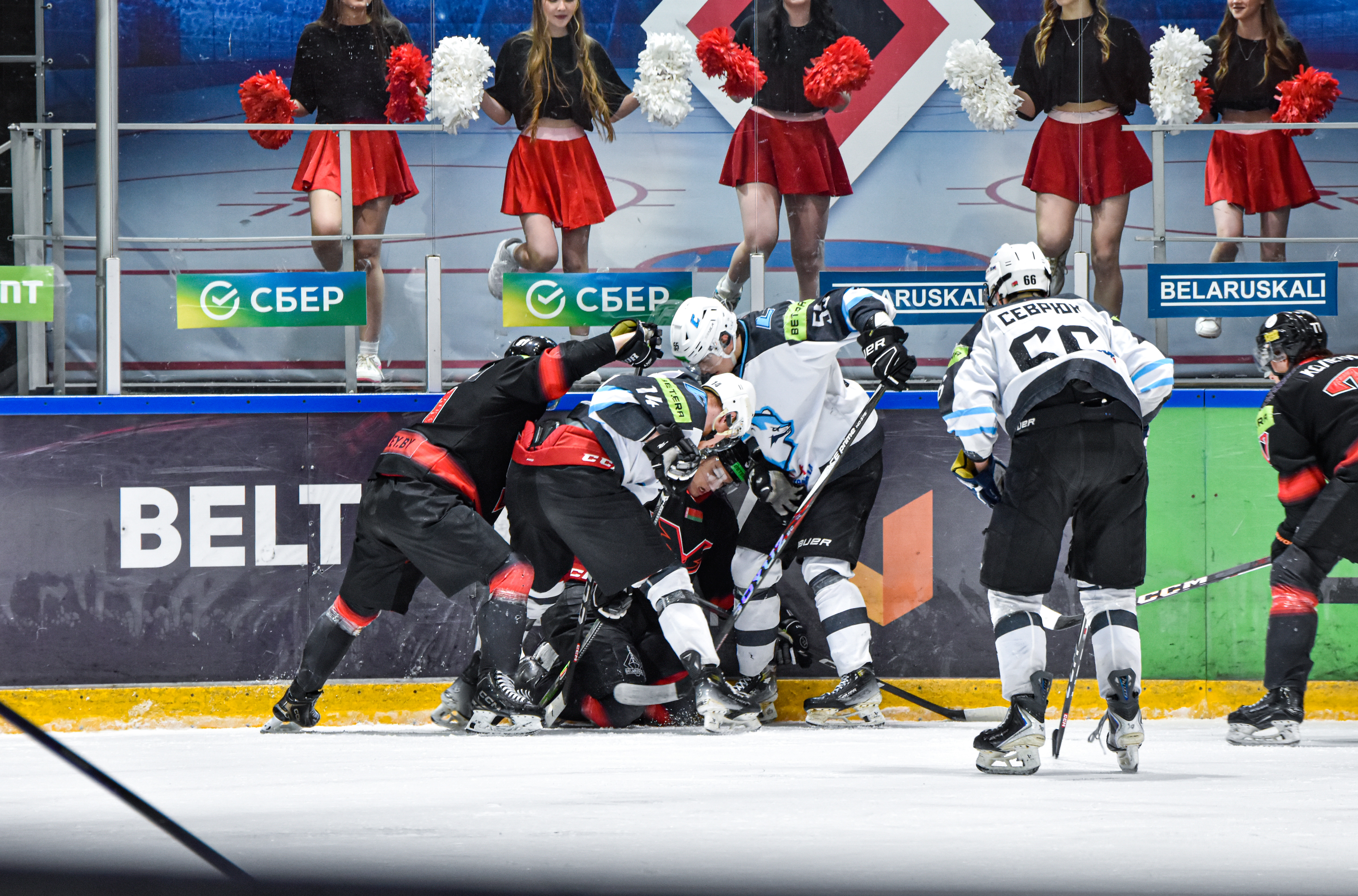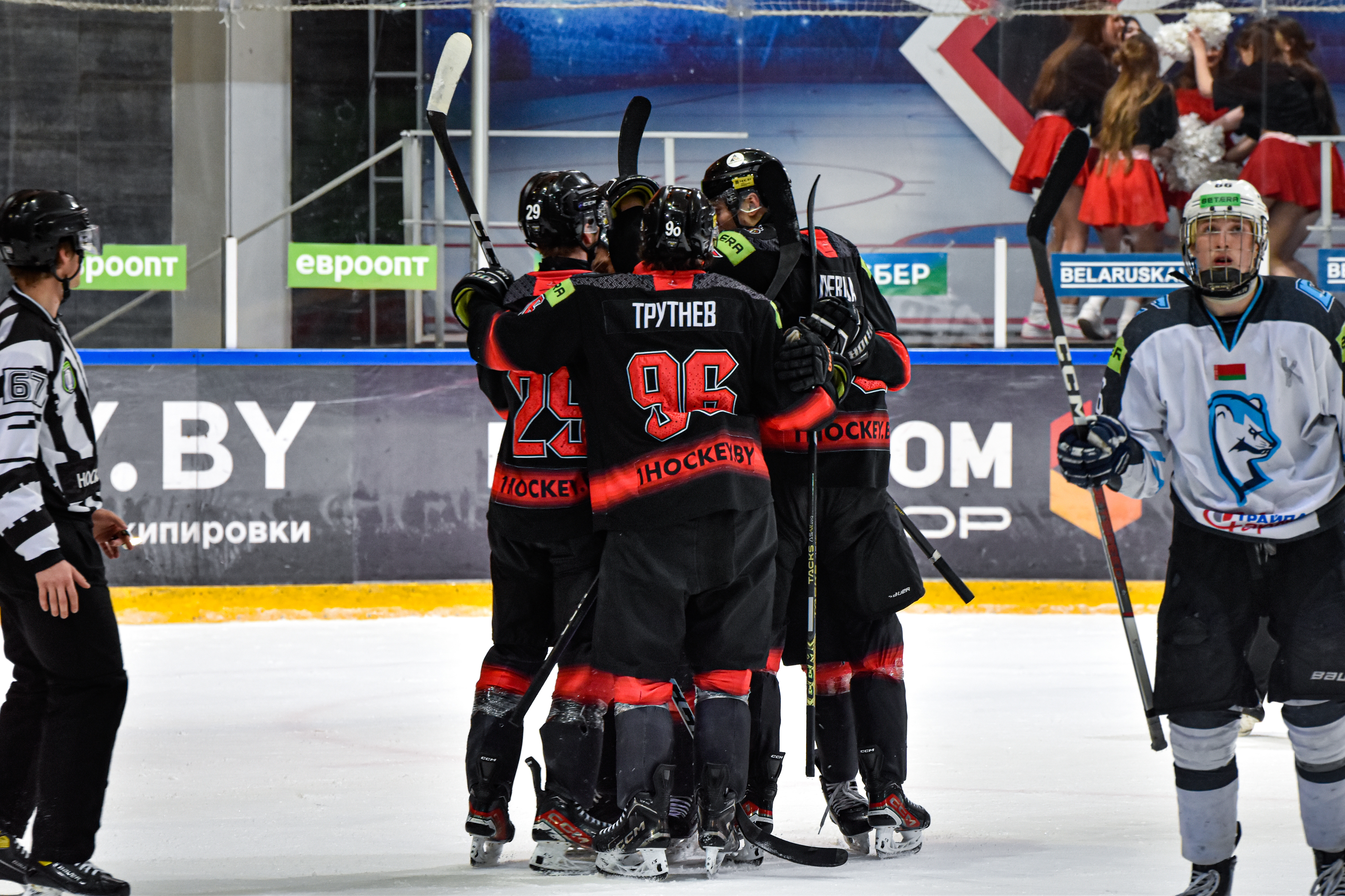 ЯСТРЕБЫ: Семенцов (62:18); Царикевич – Березовский, Трутнев – Палто (А) – Ладутько; Лупачев – Дубинич, Колесников – Бараченя – Иванюшин; Лопатин – Карбалевич (А), Я.Жук (К) – Ковецкий – Шершунович; Горин – Ковальский, Е.Левша – Д.Кузнецов – Азаров.