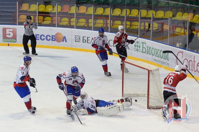 Шайбы: 1:0 - Глеб Андреев (17:36). 2:0 - Александр Щемель (31:18 – бол.). 2:1 - Дмитрий Климовец (50:28). 3:1 - Игорь Мартынов (51:36). 3:2 - Дмитрий Климовец (54:28). 3:3 - Николай Логвинюк (59:06). 4:3 - Никита Зуев (65:00).