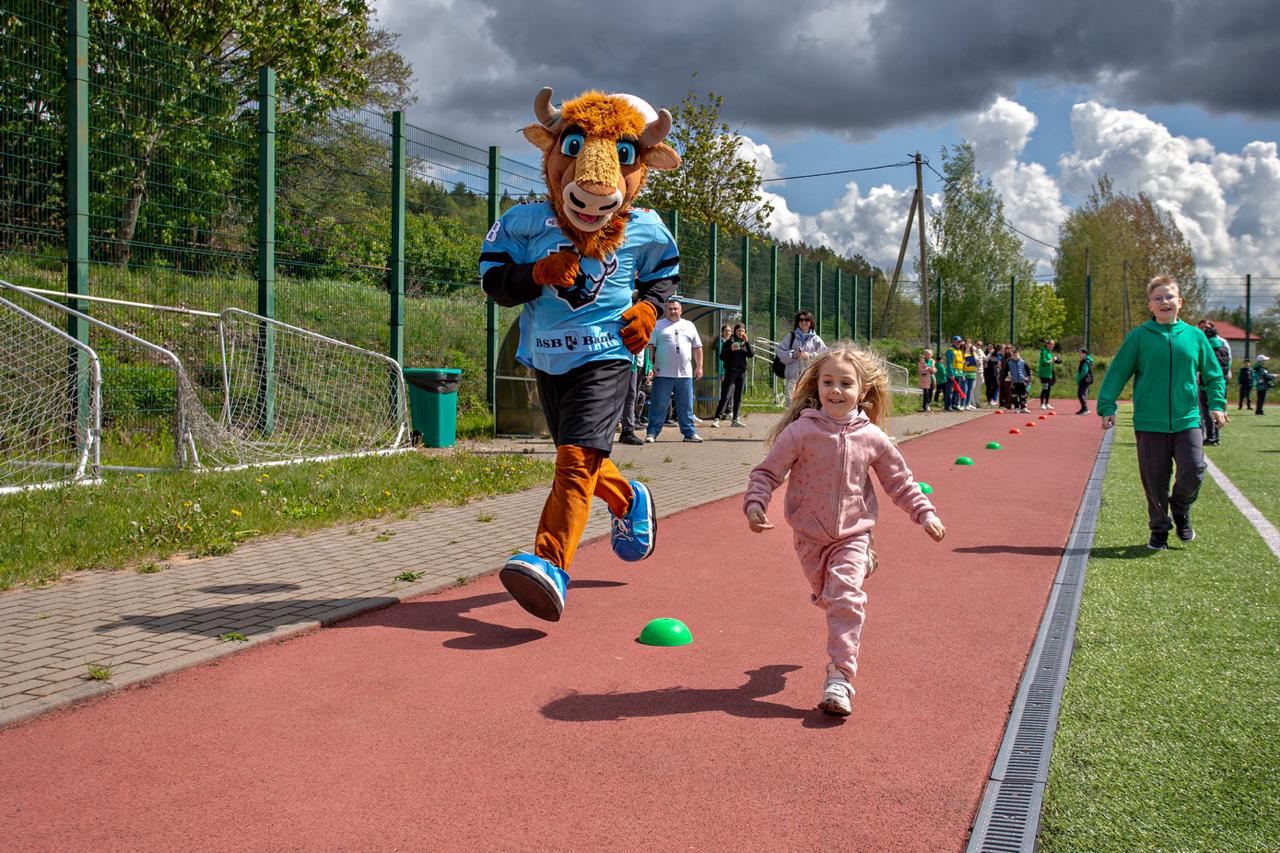 Талисман минского «Динамо» Зубрик поддержал участников соревнований, посоревновался с ними в состязаниях и, конечно, подарил массу ярких эмоций детям.