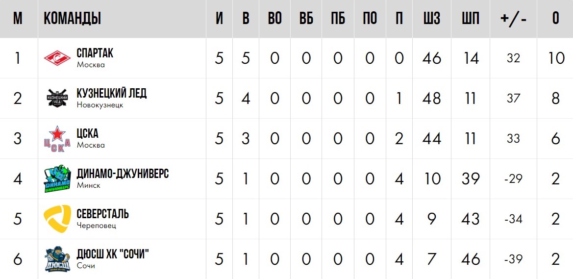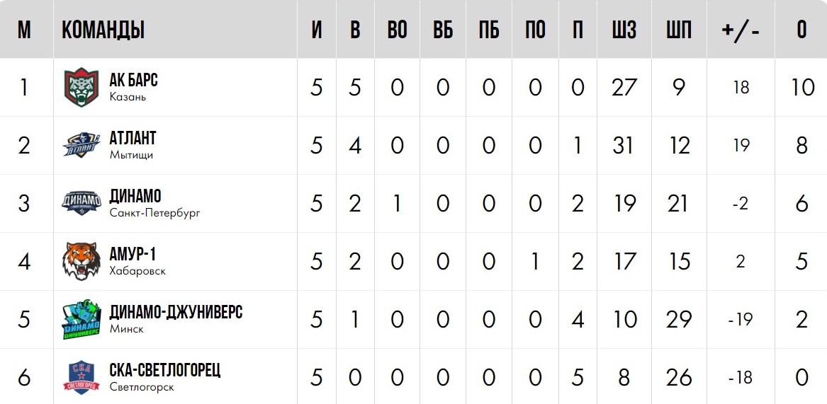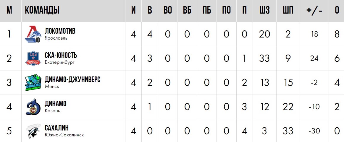 Вице-чемпионы страны «Динамо-Джуниверс» на предварительном этапе одержали всего одну победу – над «Сочи» (2:1). В остальных четырех поединках минчане уступили: московскому «Спартаку» (2:9), новокузнецкому «Кузнецкому льду» (1:13), московскому ЦСКА (2:12) и череповецкой «Северстали» (3:4). Но этого хватило, чтобы занять четвертое место в группе, по дополнительным показателям опередив еще двух соперников, также набравших по 2 очка.
