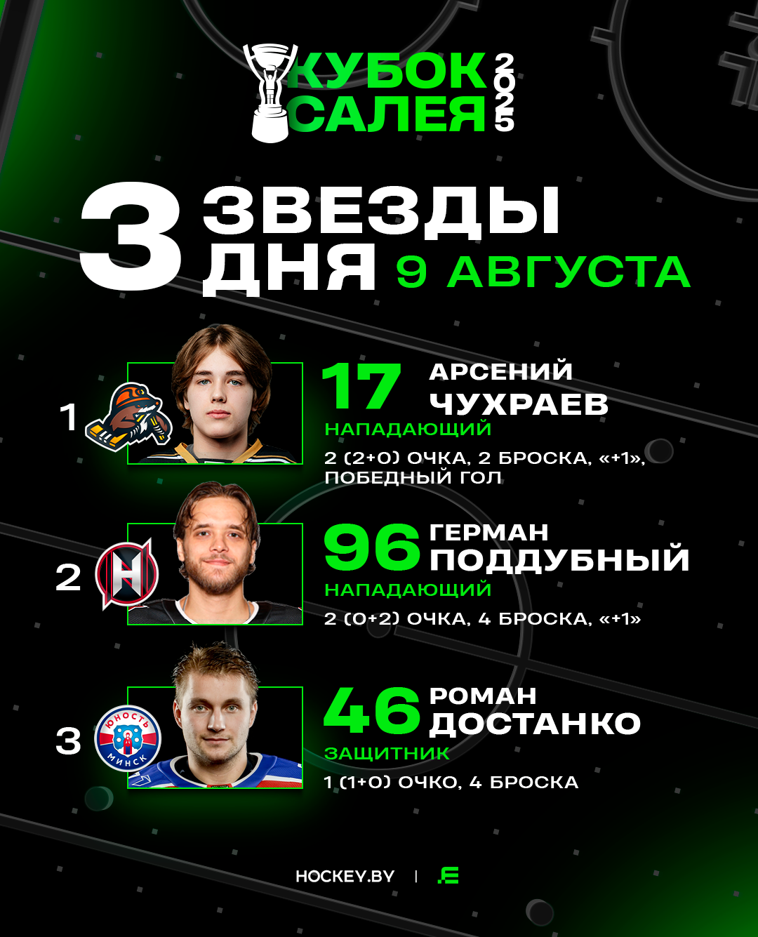 Арсений Чухраев, Герман Поддубный и Роман Достанко – три звезды субботы в Кубке Салея