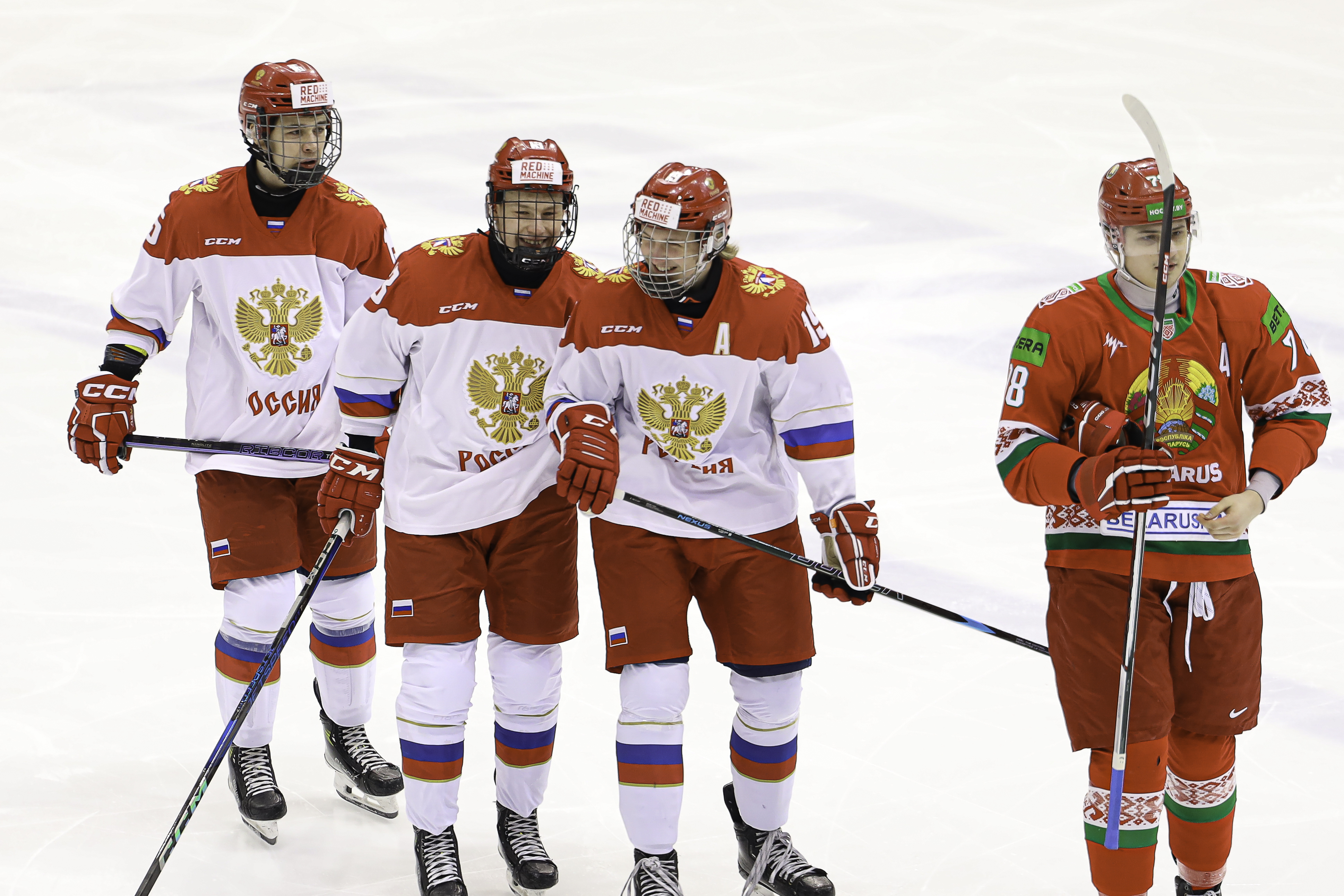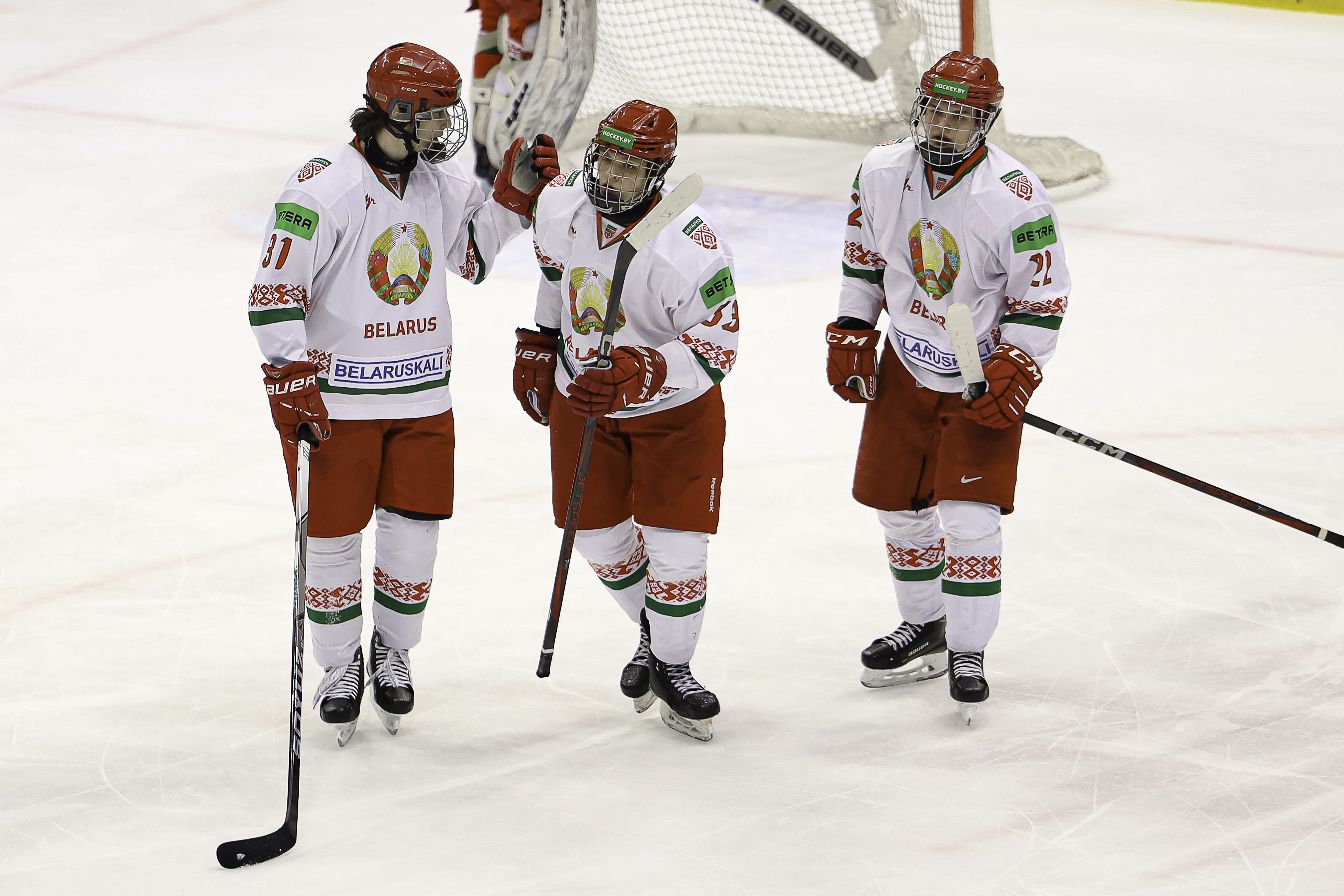 БЕЛАРУСЬ U18: Ермоленко (Ходин); Чемеринский – Соловей – Симонов; Вергейчик (А) – Бедрицкий – Русаков; Бородулин (А) – Чуканов – Сивирчуков; Севко – Карабань (К) – Архипцев.