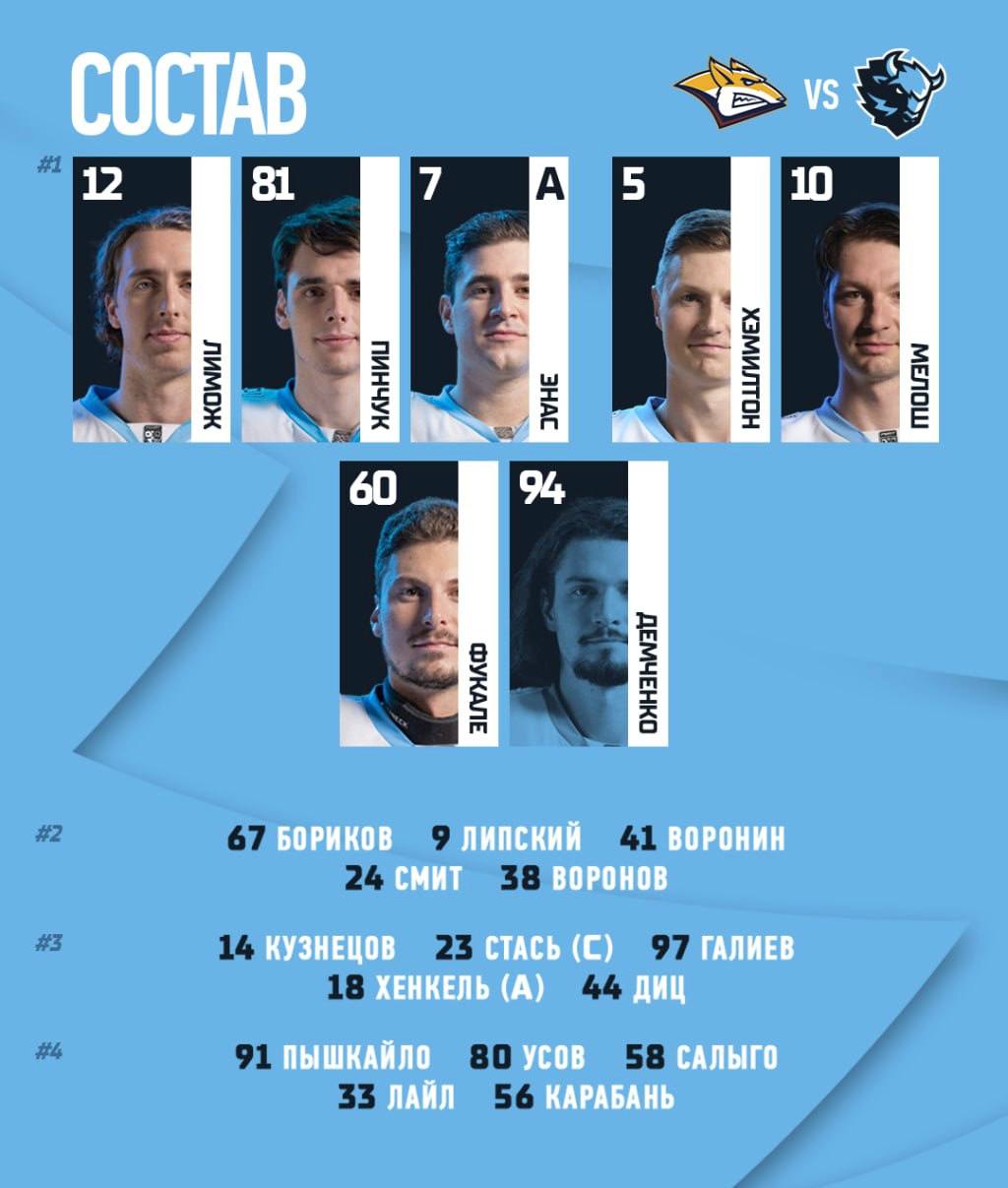 Воронин и Воронов – во втором звене, Галиев присоединился к тройке Стася и Кузнецова. Состав минского «Динамо» на матч против «Металлурга»