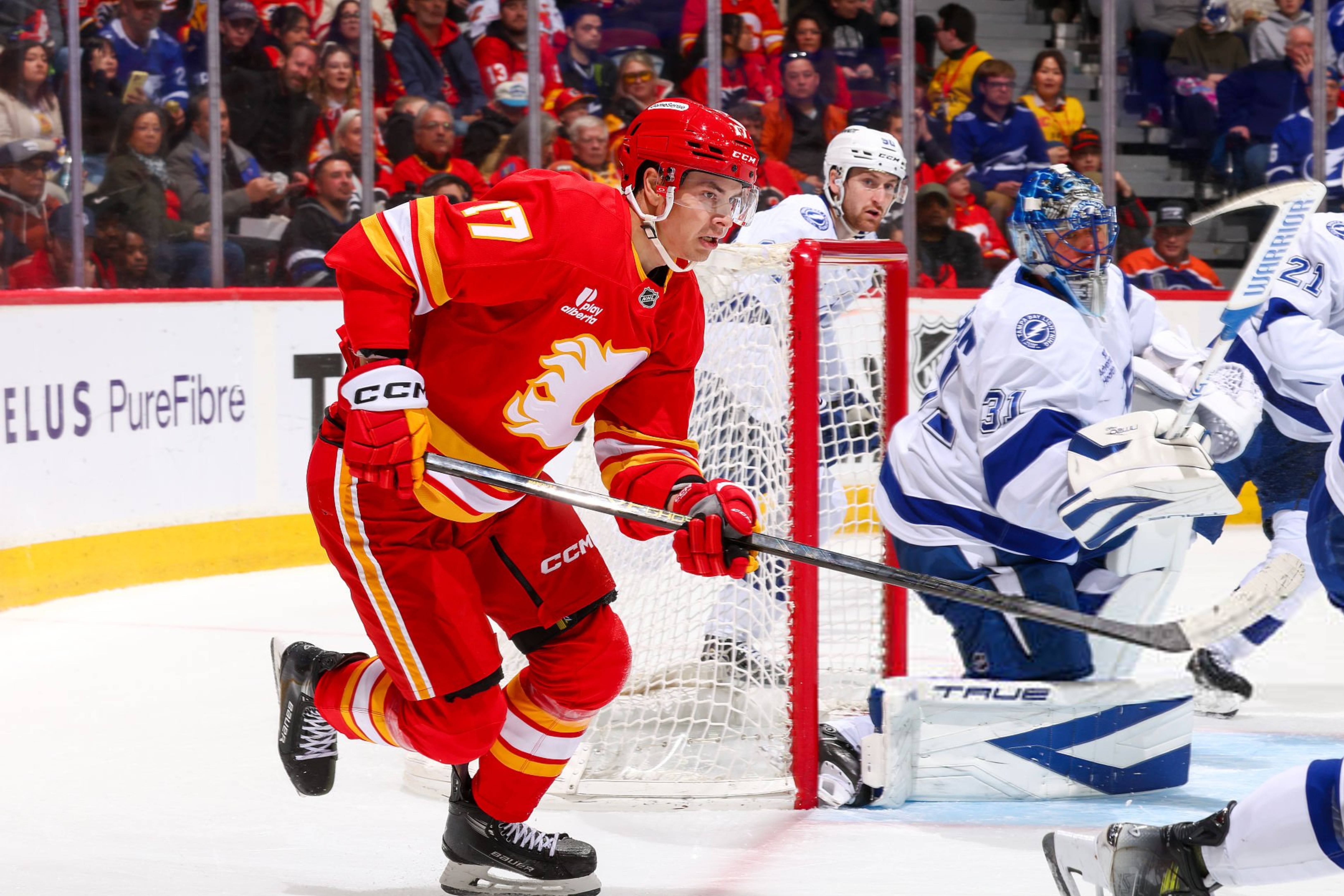 В матче регулярного чемпионата НХЛ «Калгари» обыграл «Тампу» (4:3).