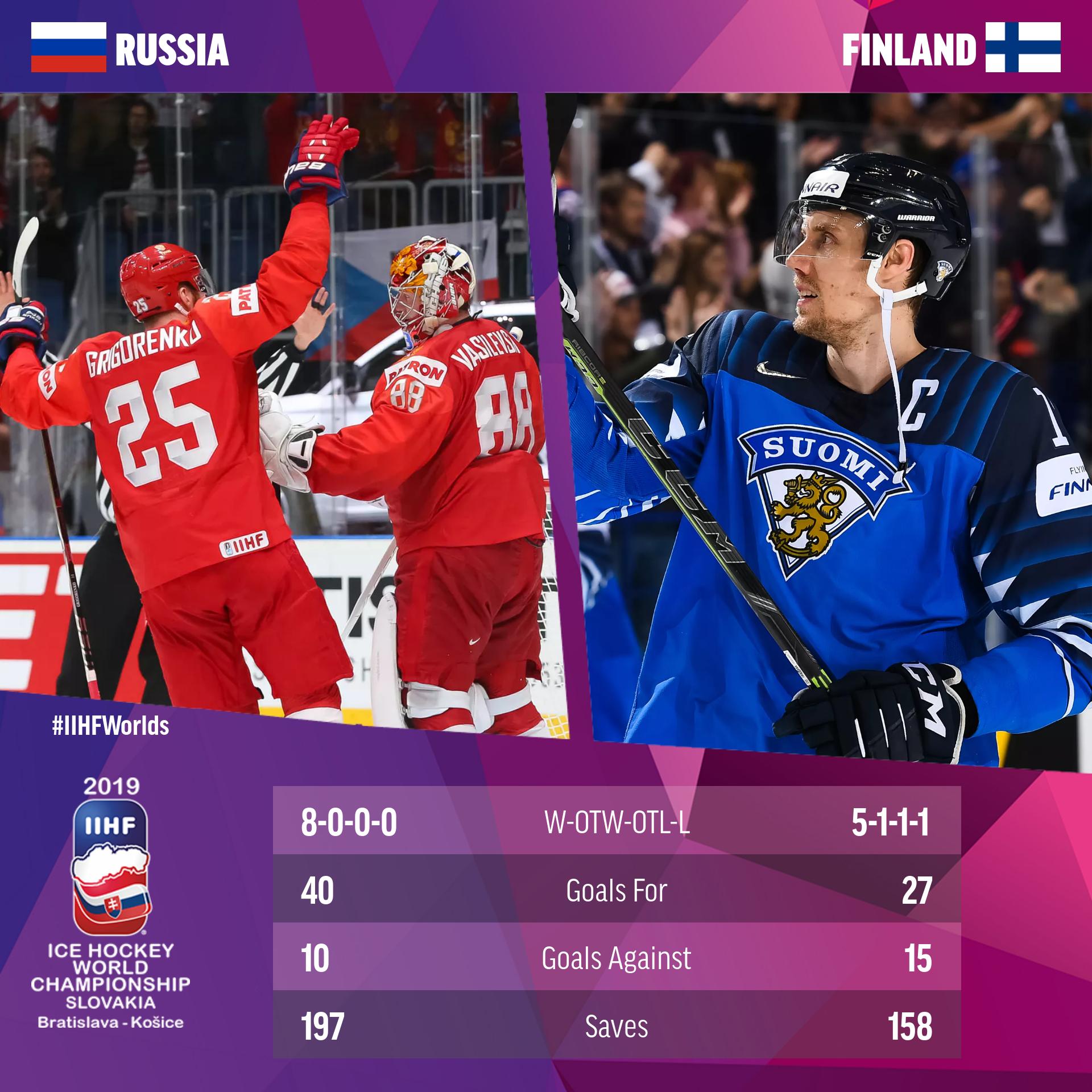 Таким образом, в воскресенье, 26 мая, в финале чемпионата мира сыграют сборные Канады и Финляндии. Матч пройдет в Братиславе и начнется в 21:15. В прямом эфире встречу покажет телеканал «Беларусь 5». В матче за «бронзу» сойдутся россияне и чехи. Игру, которая начнется в 16:45, покажет телеканал «Беларусь 2».