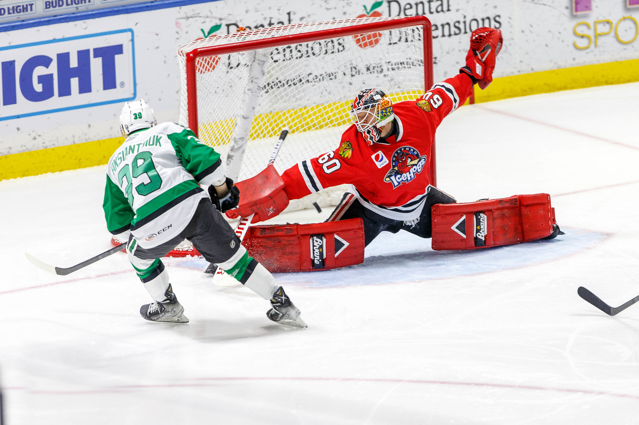 «Техас» на выезде проиграл «Рокфорду» – 4:7 (2:4, 1:2, 1:1) в матче регулярного чемпионата АХЛ. Белорусский форвард гостей Евгений Оксентюк во втором поединке кряду отметился 2 (1+1) результативными баллами.