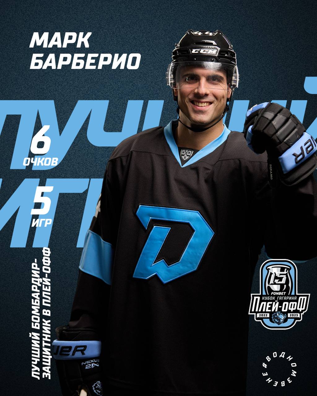 Защитник минского «Динамо» Марк Барберио сделал шесть голевых передач в пяти матчах серии плей-офф против СКА. Игрок обороны возглавляет список бомбардиров среди защитников. Барберио имеет показатель полезности «+4».