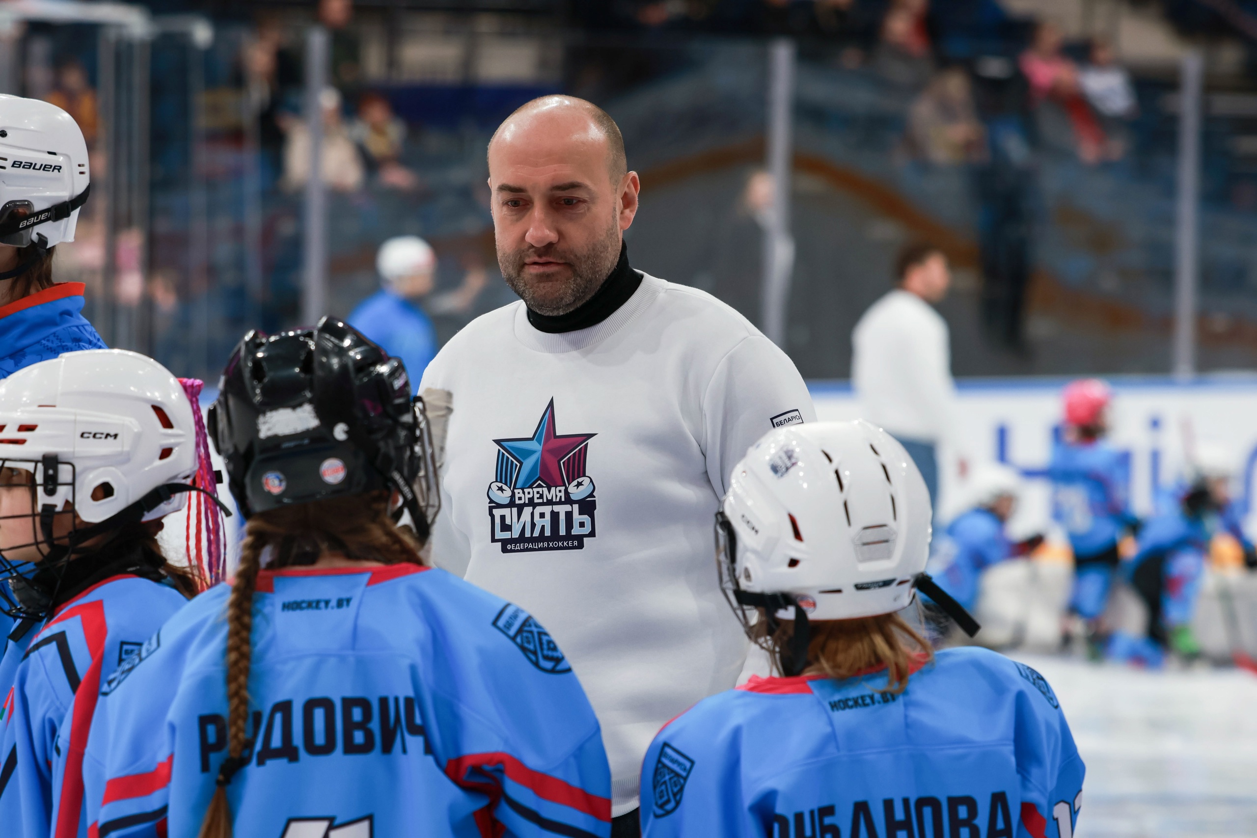 Известные тренеры – отличительная черта, фишка Всемирного женского хоккейного матча в Беларуси. В этом году к амбассадору женского хоккея в Беларуси Кристине Камыш в тренерском штабе команды «Белых» присоединились защитник национальной сборной Беларуси и минского «Динамо» Кристиан Хенкель, экс-форвард национальной сборной Беларуси Артем Демков, певица и финалистка шоу X-FACTOR Настя Кравченко и главный тренер женской сборной Беларуси U15 Константин Немирко.
