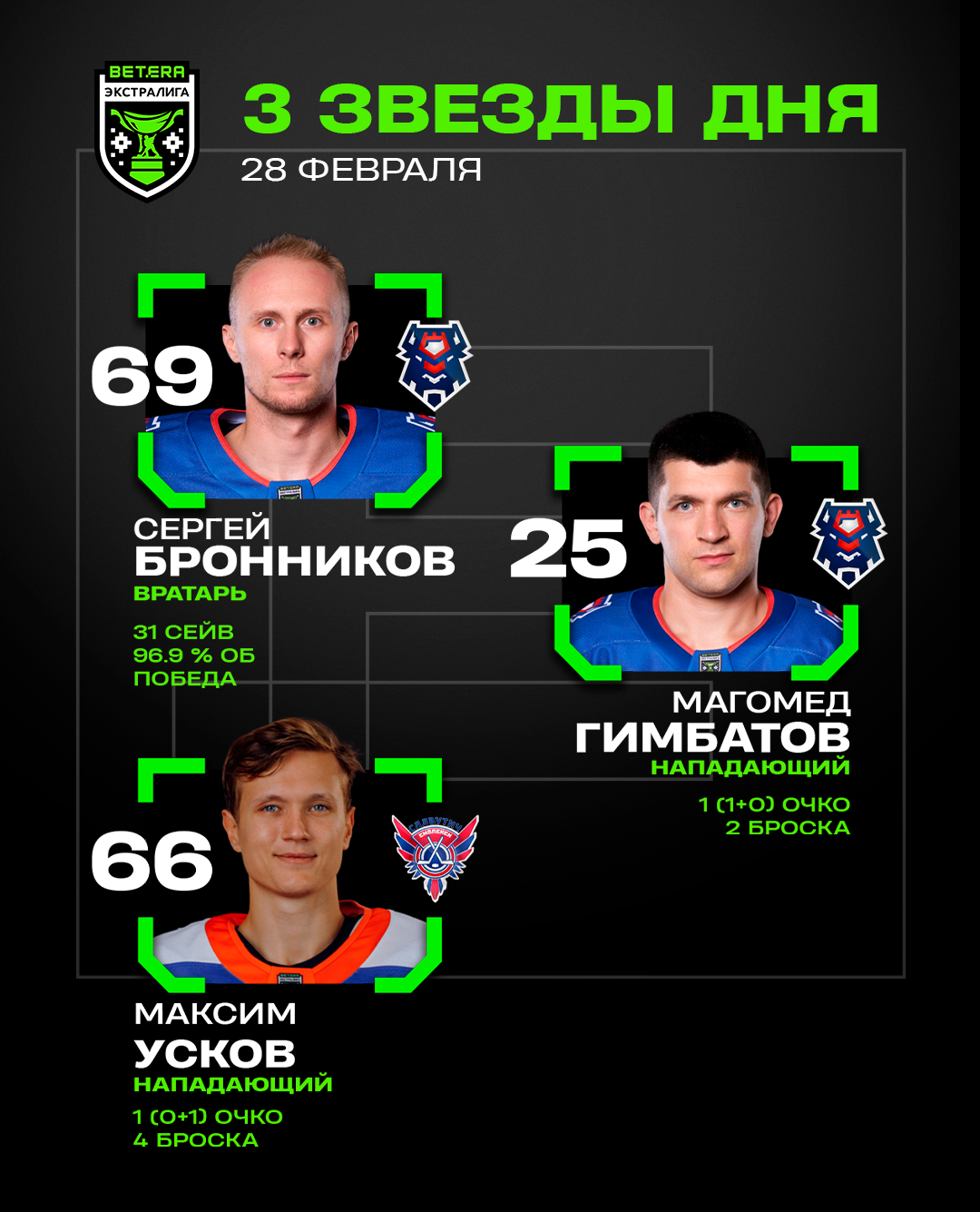 Сергей Бронников, Магомед Гимбатов и Максим Усков – три звезды первого матча плей-ин Betera-Экстралиги