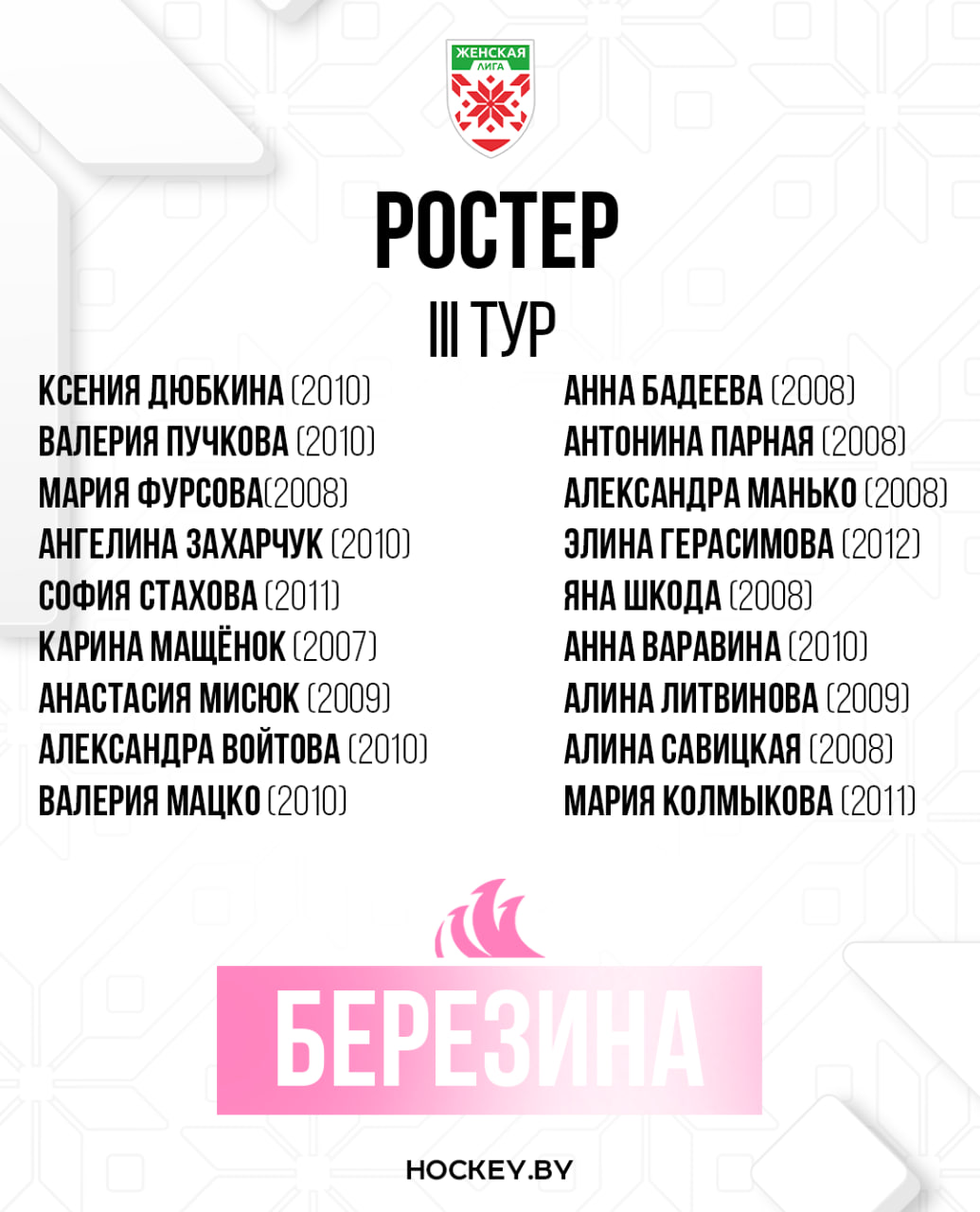 «Березина» представила состав на третий тур женской лиги сезона-2024/25.