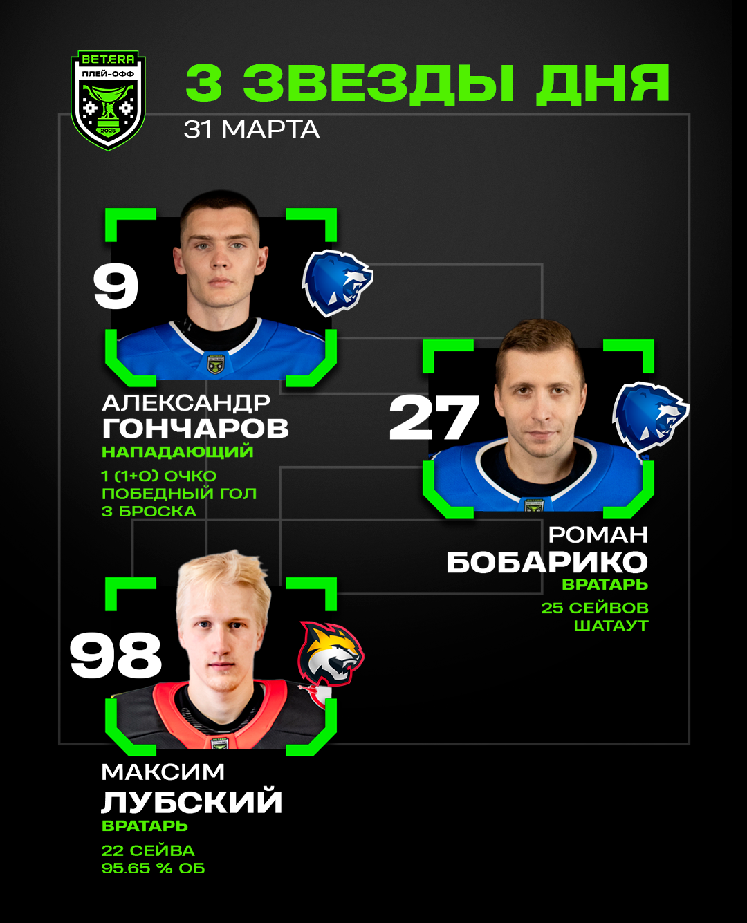 Александр Гончаров, Роман Бобарико и Максим Лубский – три звезды понедельника в плей-офф Betera-Экстралиги