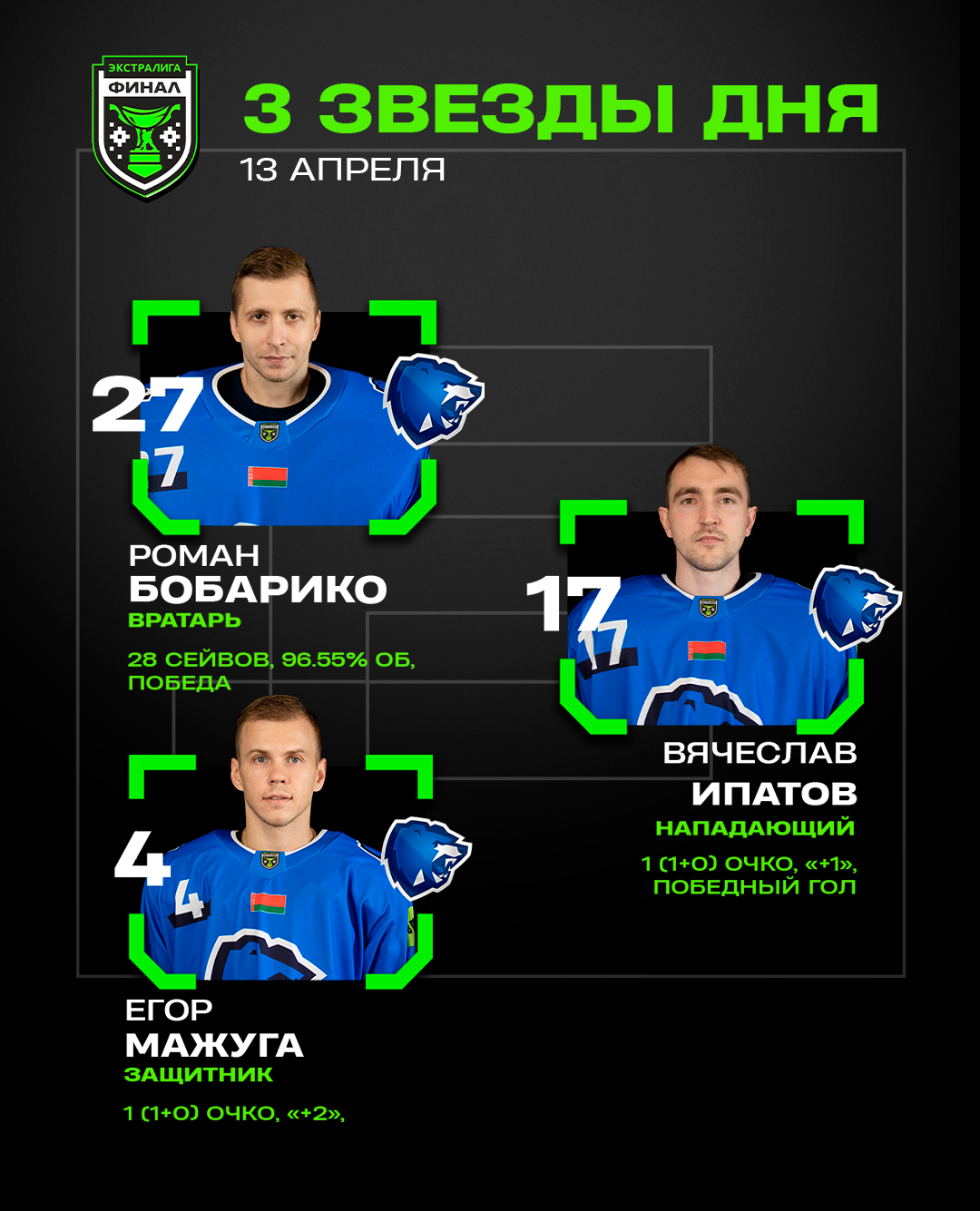 Роман Бобарико, Вячеслав Ипатов и Егор Мажуга – три звезды воскресенья в финальной серии Betera-Экстралиги