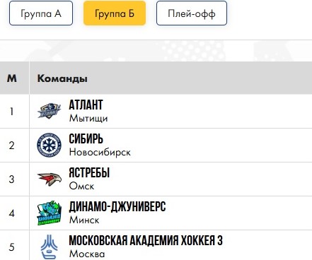 Третий состав московской академии выступает в открытом чемпионате Москвы среди юниоров (U18), в группе «В» команды провели по 12 матчей, и «Московская академия хокея-3» с 10 победами занимает там первое место.