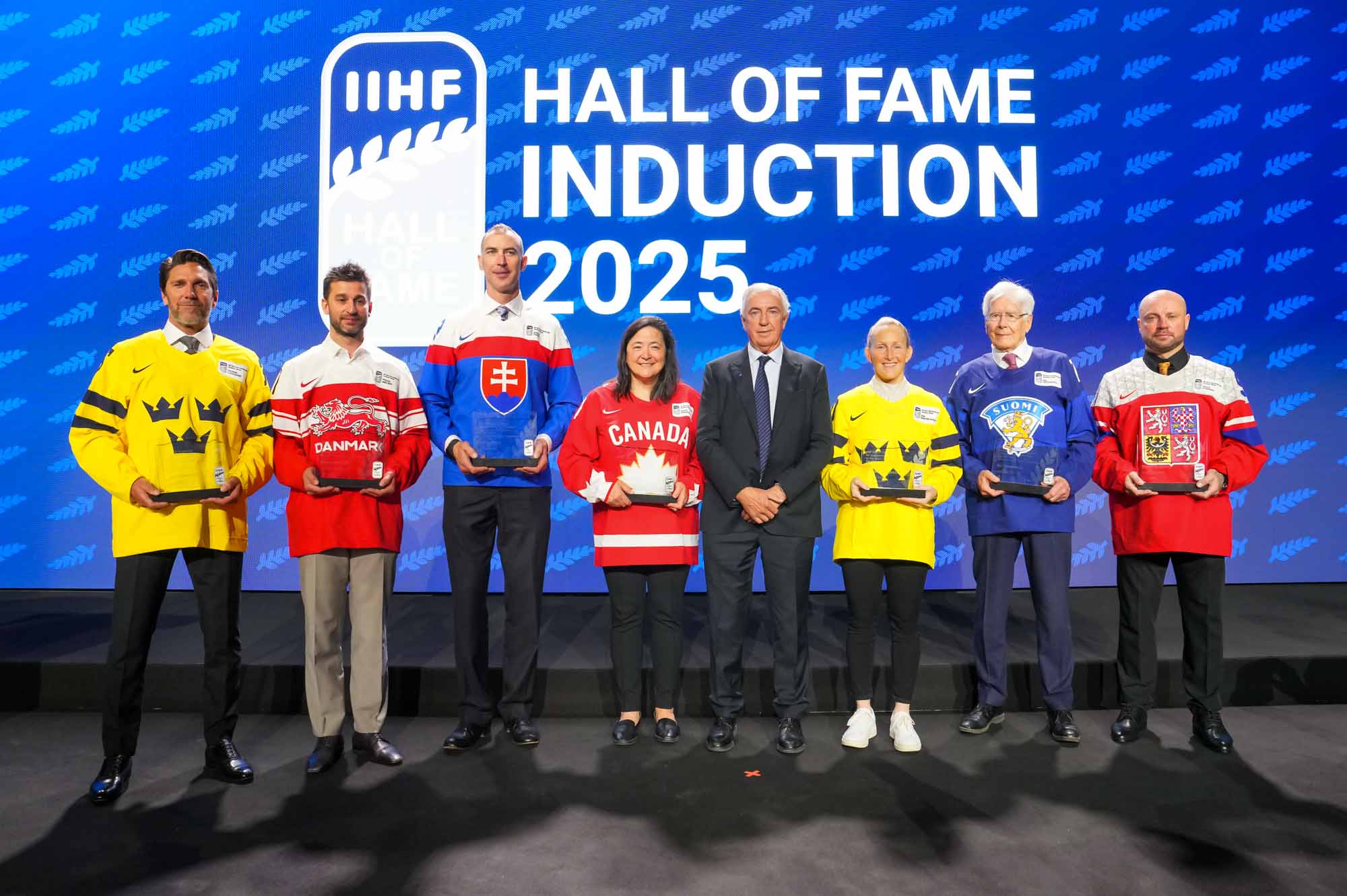 В Зал славы ИИХФ также включены серебряный призер Олимпийских игр в составе женской сборной Швеции Ким Мартин-Хассон, двукратная олимпийская чемпионка и семикратная чемпионка мира Вики Сунохара из Канады, датский форвард Франс Нильсен, бронзовый призер Олимпийских игр и пятикратный чемпион мира чешский нападающий Давид Выборны и финский хоккейный функционер Кай Хиетаринта.