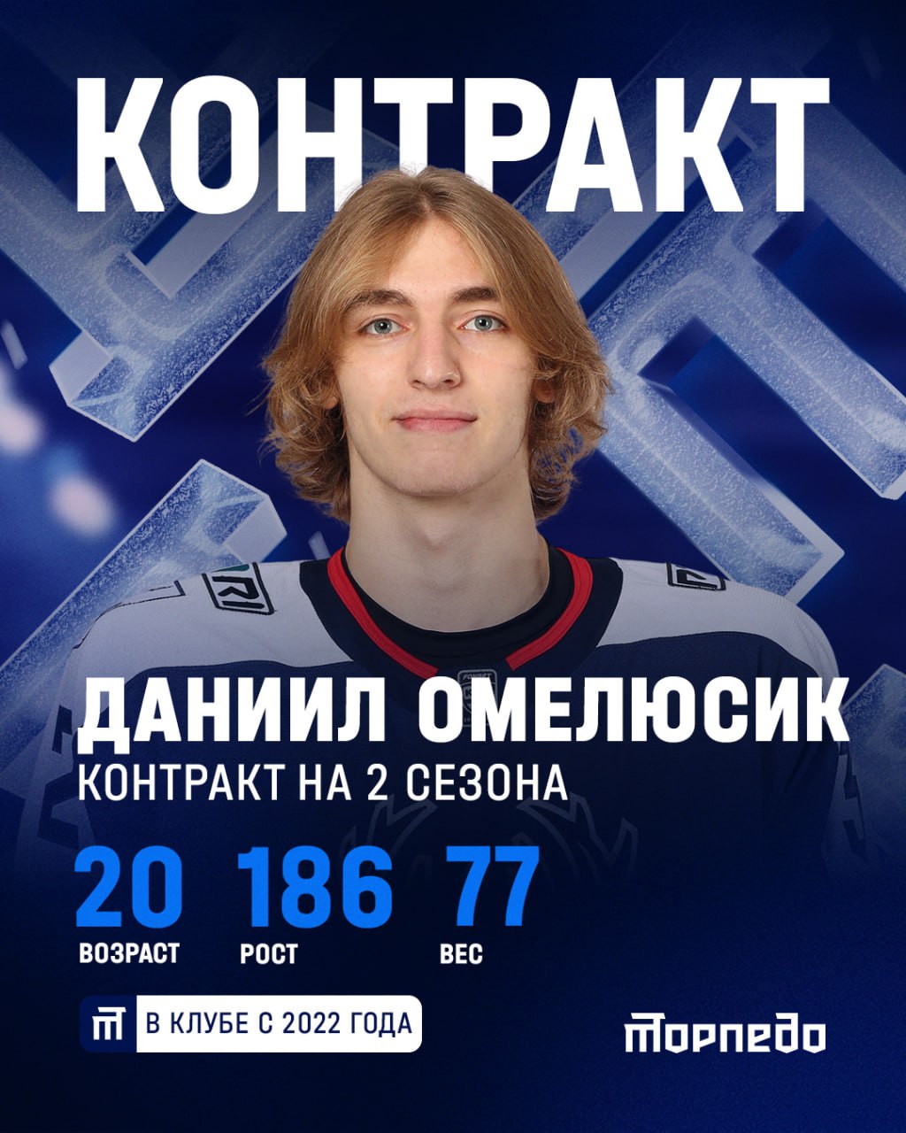 Белорусский нападающий Даниил Омелюсик (2004) продлил двусторонний контракт с нижегородским «Торпедо» до конца сезона-2026/27.