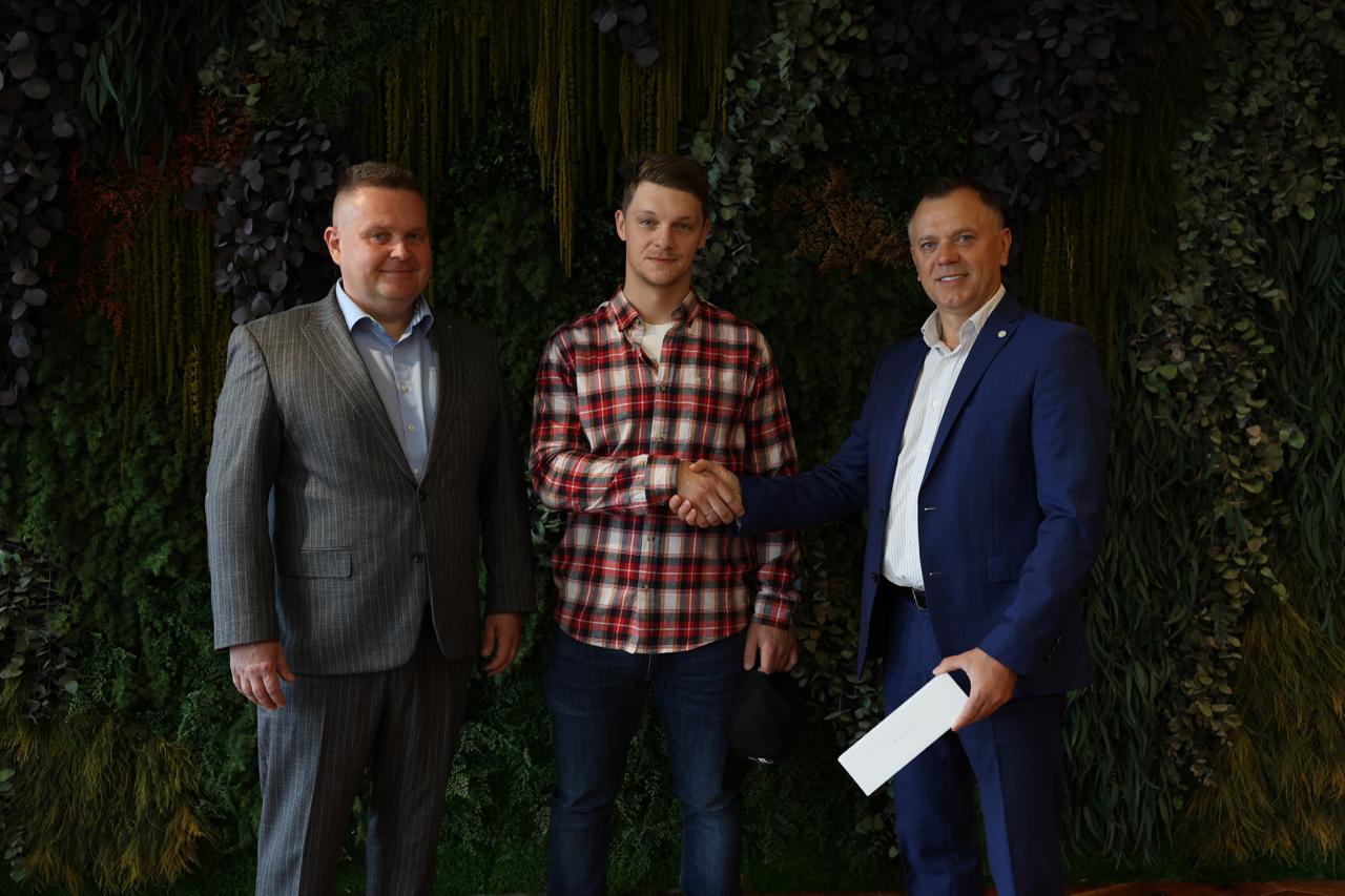 Сбер Банк уже более 5 лет активно поддерживает хоккей, сотрудничая с Федерацией хоккея Беларуси в диджитал и проводя оффлайн-акции, направленные на продвижение хоккея с шайбой и укрепление брендов обеих организаций. Традиционным стало и участие представителей Сбера в церемонии закрытия хоккейного сезона, на которой руководители банка вручают подарки лучшим хоккеистам. Одним из таких стал Андрей Геращенко, который в составе жлобинского «Металлурга» был признан лучшим защитником и лучшим защитником-бомбардиром чемпионата Беларуси сезона 2024/2025. Сегодня Андрей получил специальный подарок от Сбера.