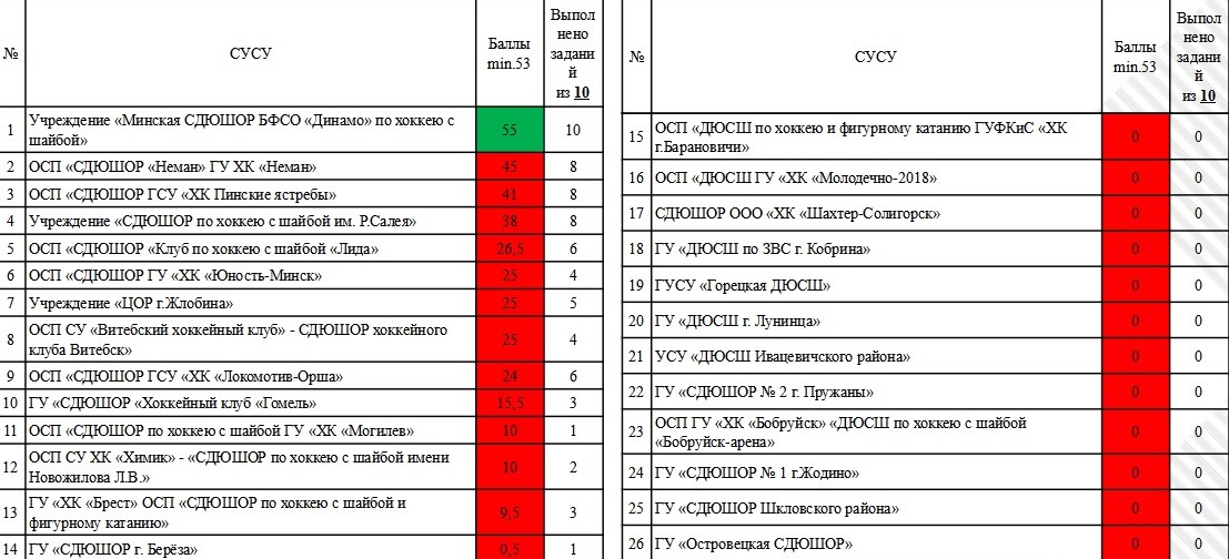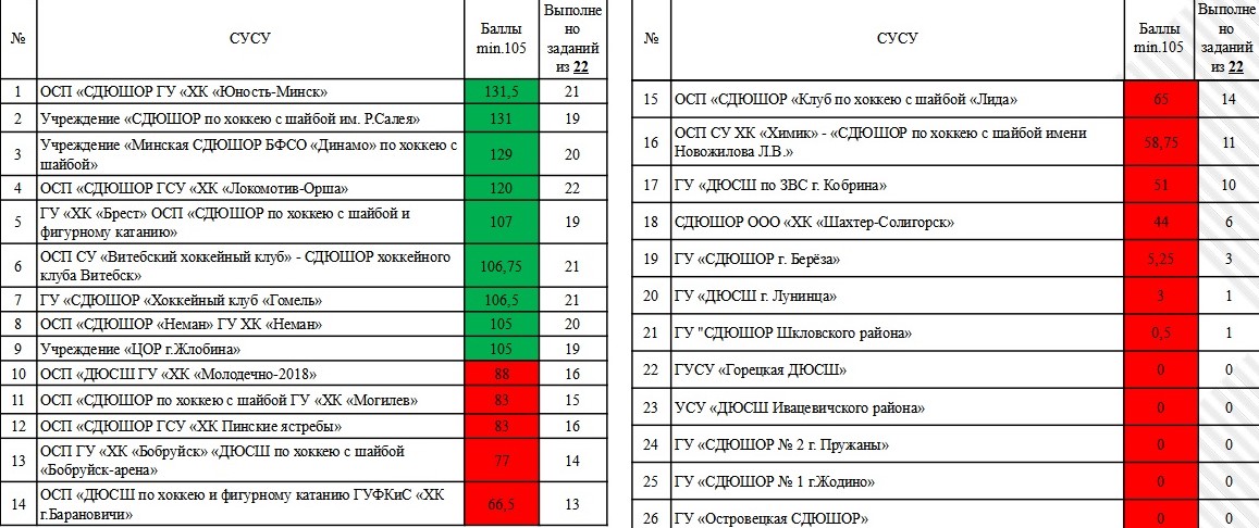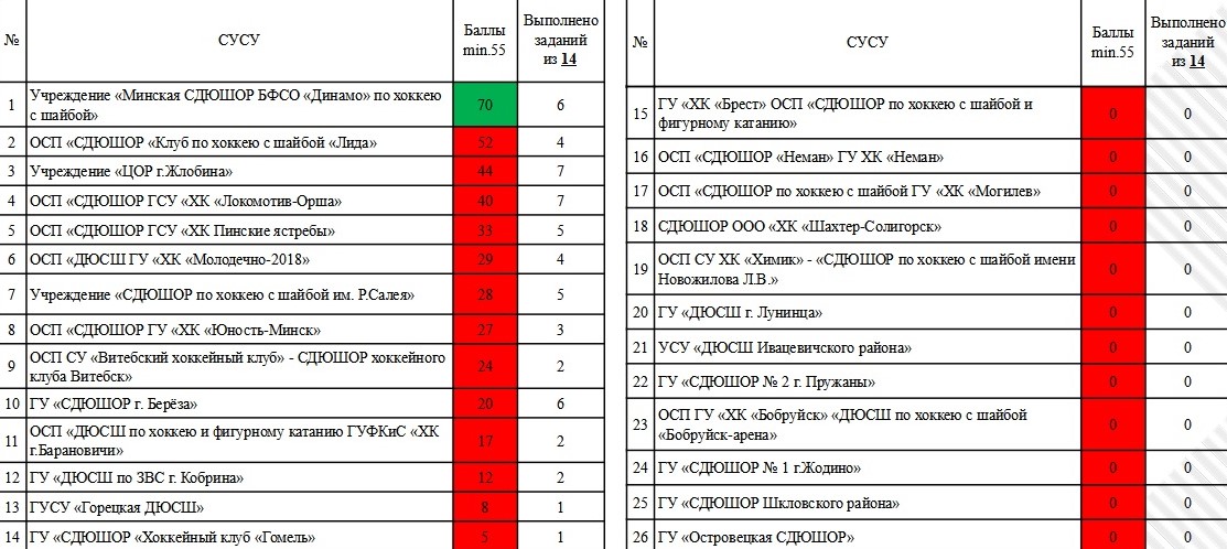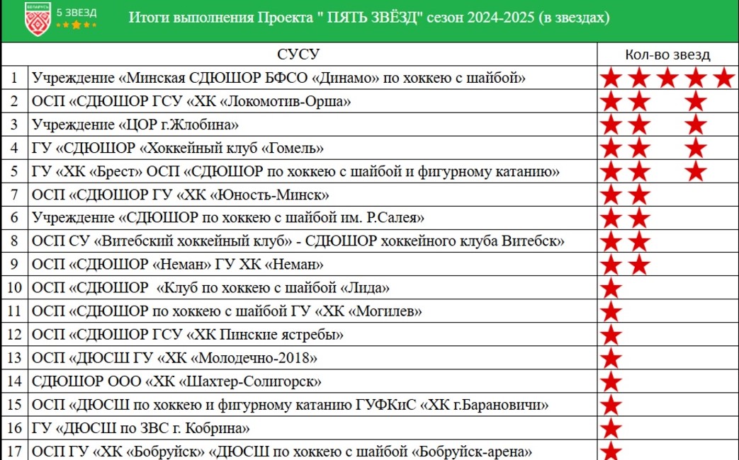 В сравнении с прошлым годом существенно шагнули вперед и приблизились к выполнению второй звезды школы «Лиды», «Могилева», «Пинских ястребов», «Молодечно-2018», «Бобруйск-Арены» (с 0 до 73 баллов!).