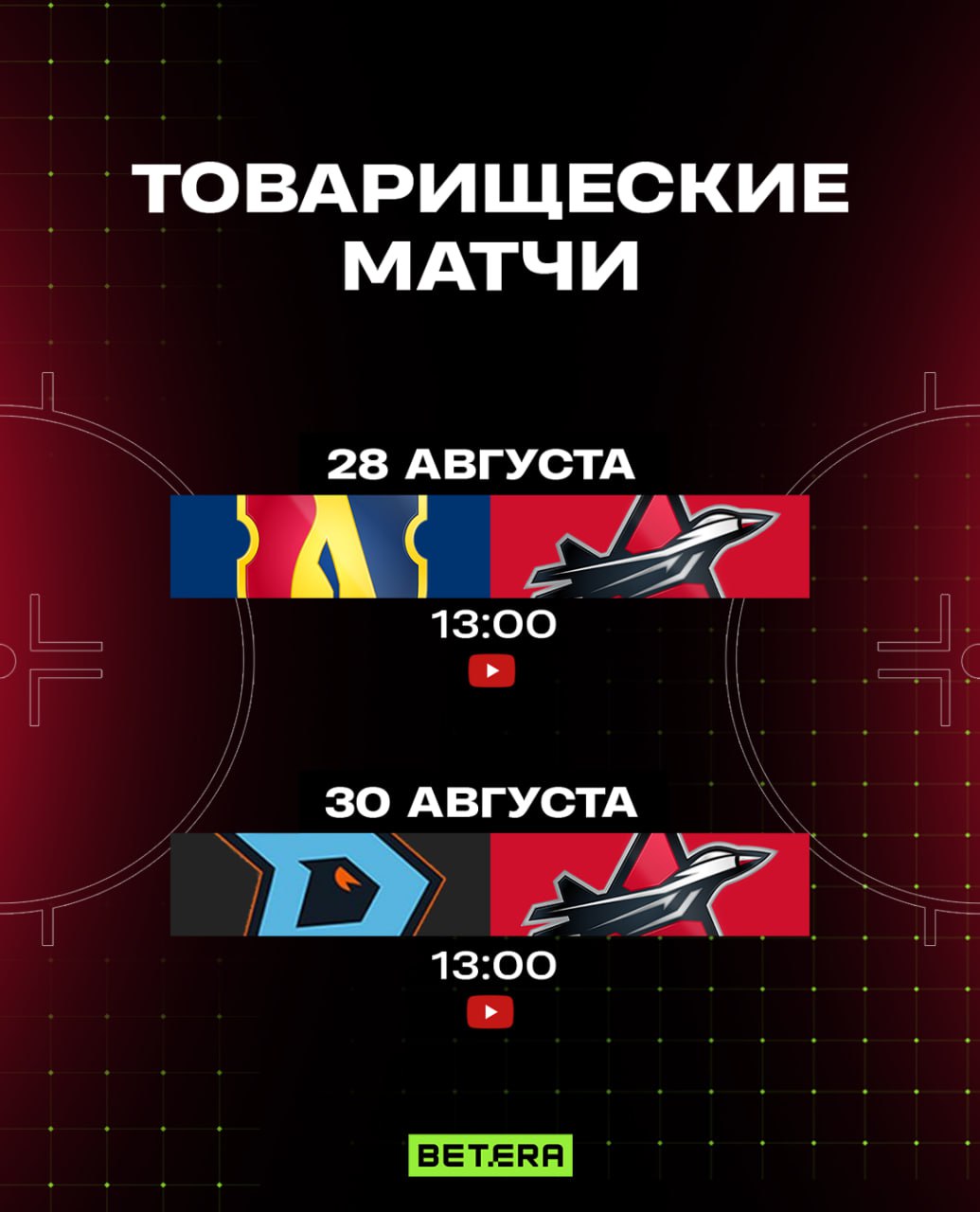 Матчи пройдут 28 августа в Лиде и 30 августа в Бобруйске. Начало обеих поединков запланировано на 13:00.