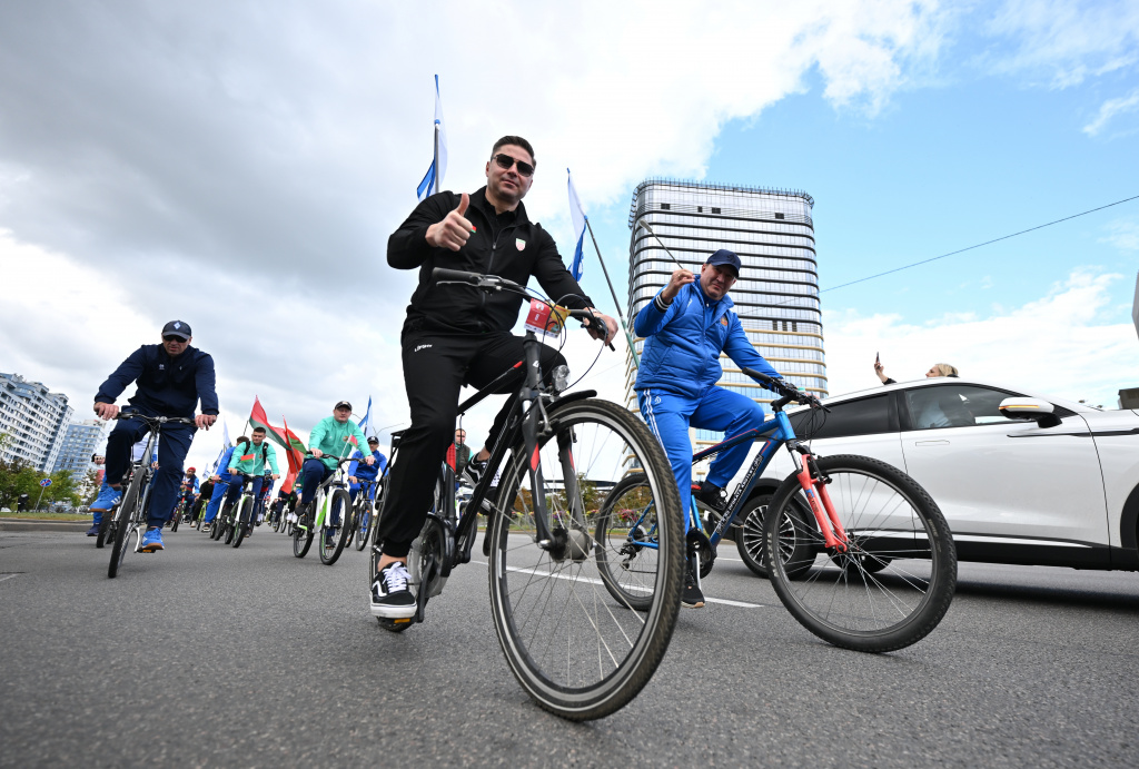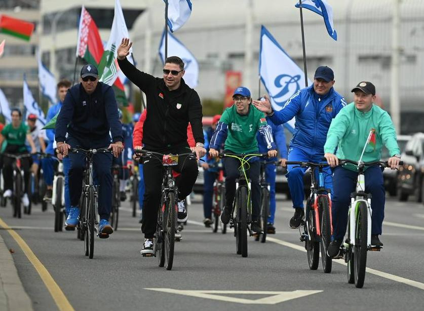 Сегодня в Беларуси отмечается День народного единства. В честь праздника был организован велопробег, в котором приняли участие заместитель премьер-министра Беларуси Наталья Петкевич, руководители НОК, Министерства спорта и туризма, а также известные спортсмены, руководители федераций, члены национальных команд и сотрудники спортивных учреждений. Среди участников – и председатель Федерации хоккея Беларуси Александр Богданович.
