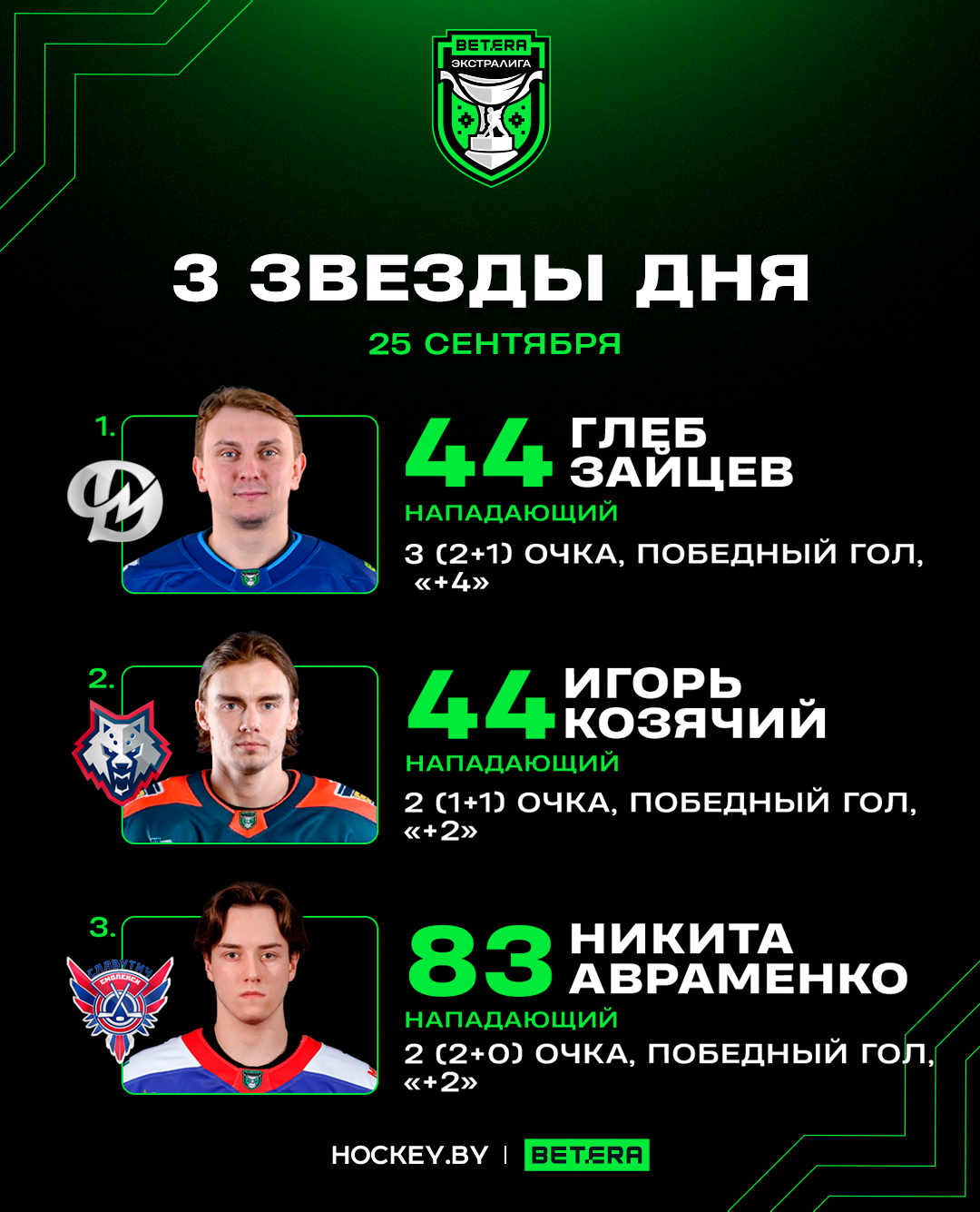 Глеб Зайцев, Игорь Козячий и Никита Авраменко – три звезды четверга в Betera-Экстралиге