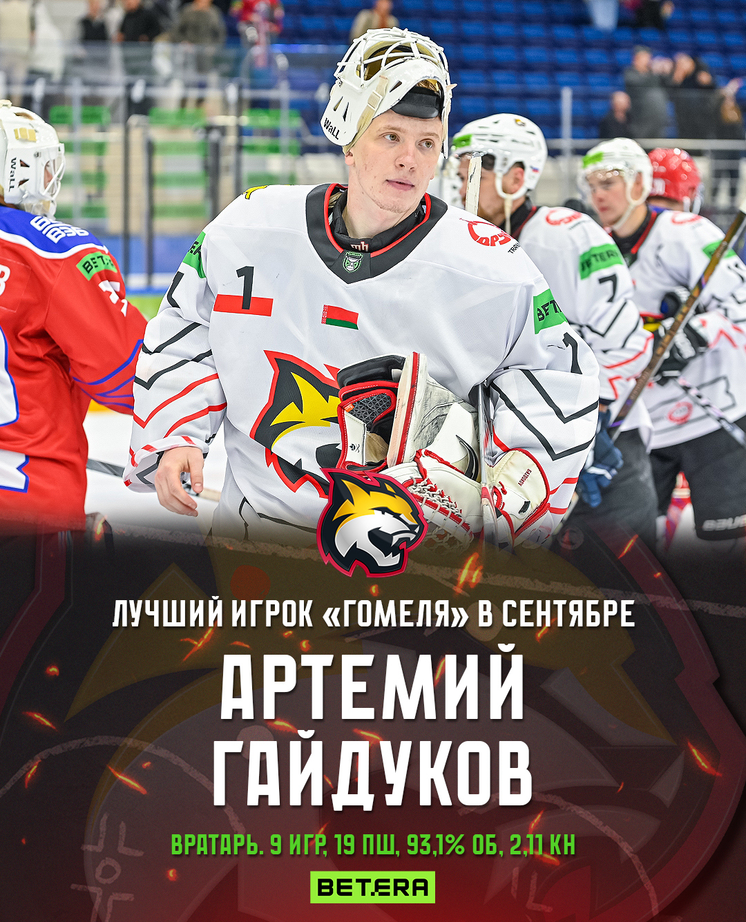 В минувшем месяце Артемий провел 9 матчей, пропустил 19 шайб при 93.1% отраженных бросков, коэффициент надежности составил 2.11.