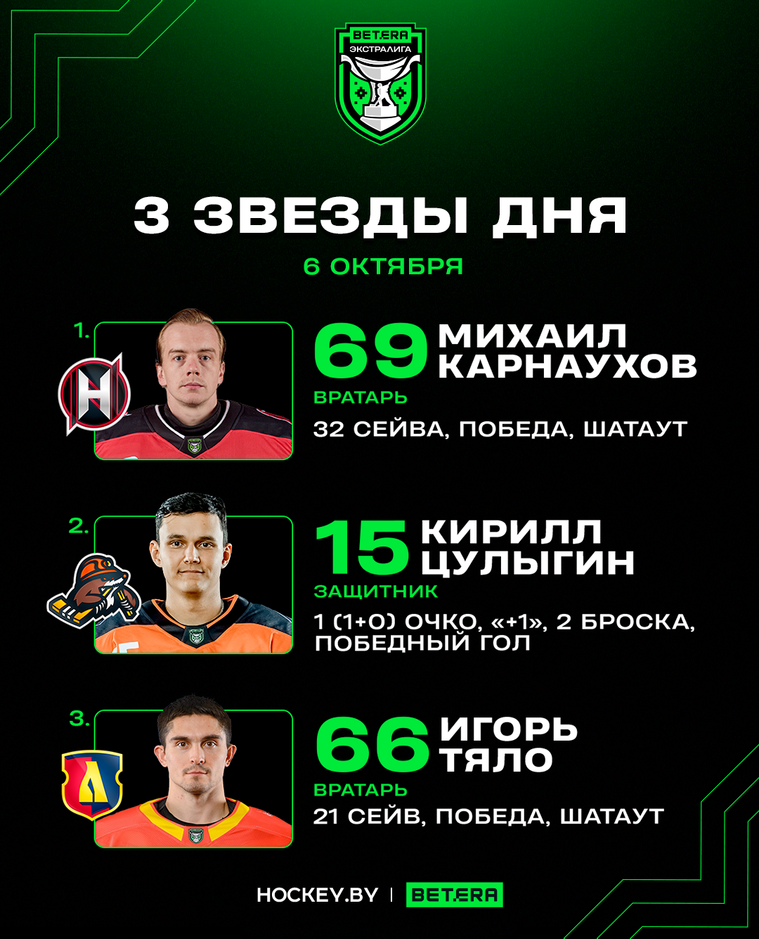Михаил Карнаухов, Кирилл Цулыгин, Игорь Тяло – три звезды понедельника в Betera-Экстралиге