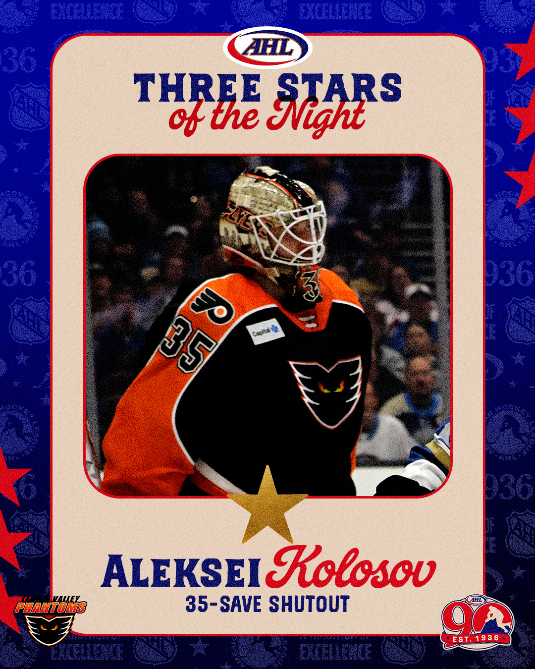 Белорусский голкипер «Лихай Уэлли» Алексей Колосов был признан первой звездой игрового дня АХЛ.