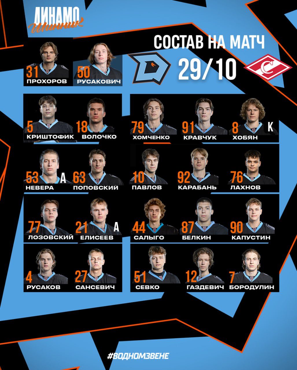 Прохоров сыграет в воротах, Белкин – в третьем звене: состав «Динамо-Шинника» на матч против МХК «Спартак»