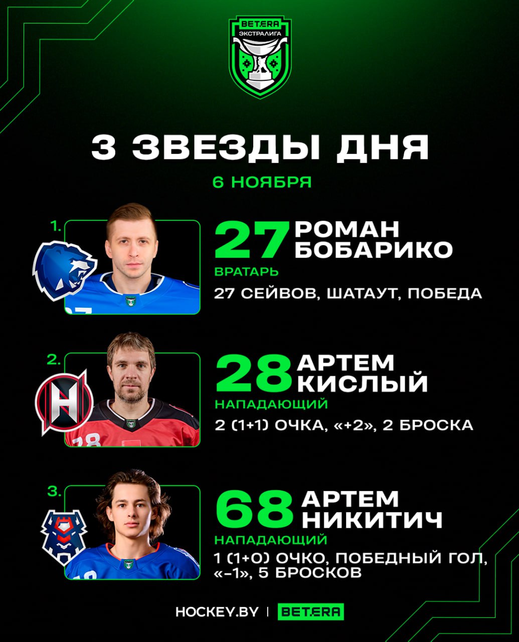Роман Бобарико, Артем Кислый и Артем Никитич – три звезды четверга в Betera-Экстралиге