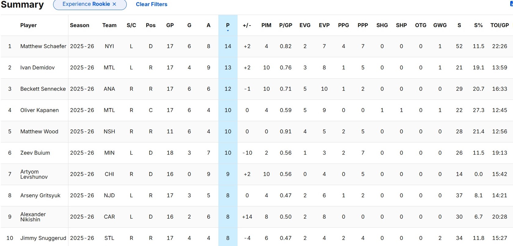 В списке же новичков-бомбардиров НХЛ Артем Левшунов идет на 7-й позиции – 9 (0+9) баллов в 16 играх. Лидирует здесь защитник «Айлендерс» Мэттью Шефер (2007) из «Айлендерс», выбранный минувшим летом под первым номером на драфте НХЛ. На его счету 14 (6+8) очков в 17 матчах при 4 минутах штрафа, показателе полезности «+2» и среднем айс-тайме 22:26.