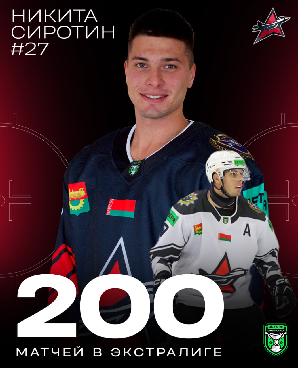 Никита Сиротин провел 200 матчей в Betera-Экстралиге