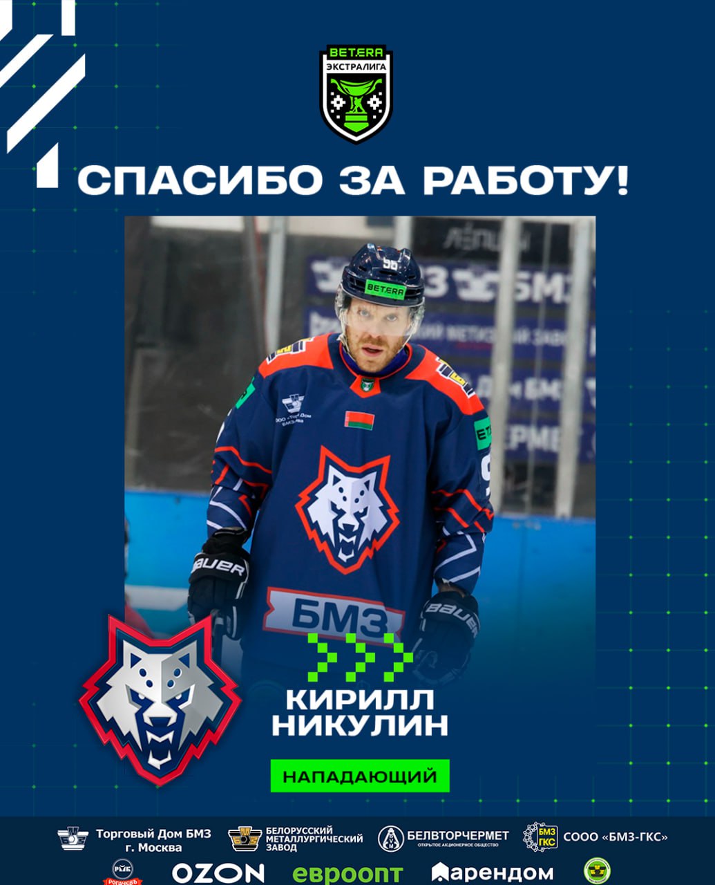 Нападающий и экс-капитан «Металлурга» Кирилл Никулин (1989) не прошел просмотр в жлобинской команде и покинул расположение «волков».