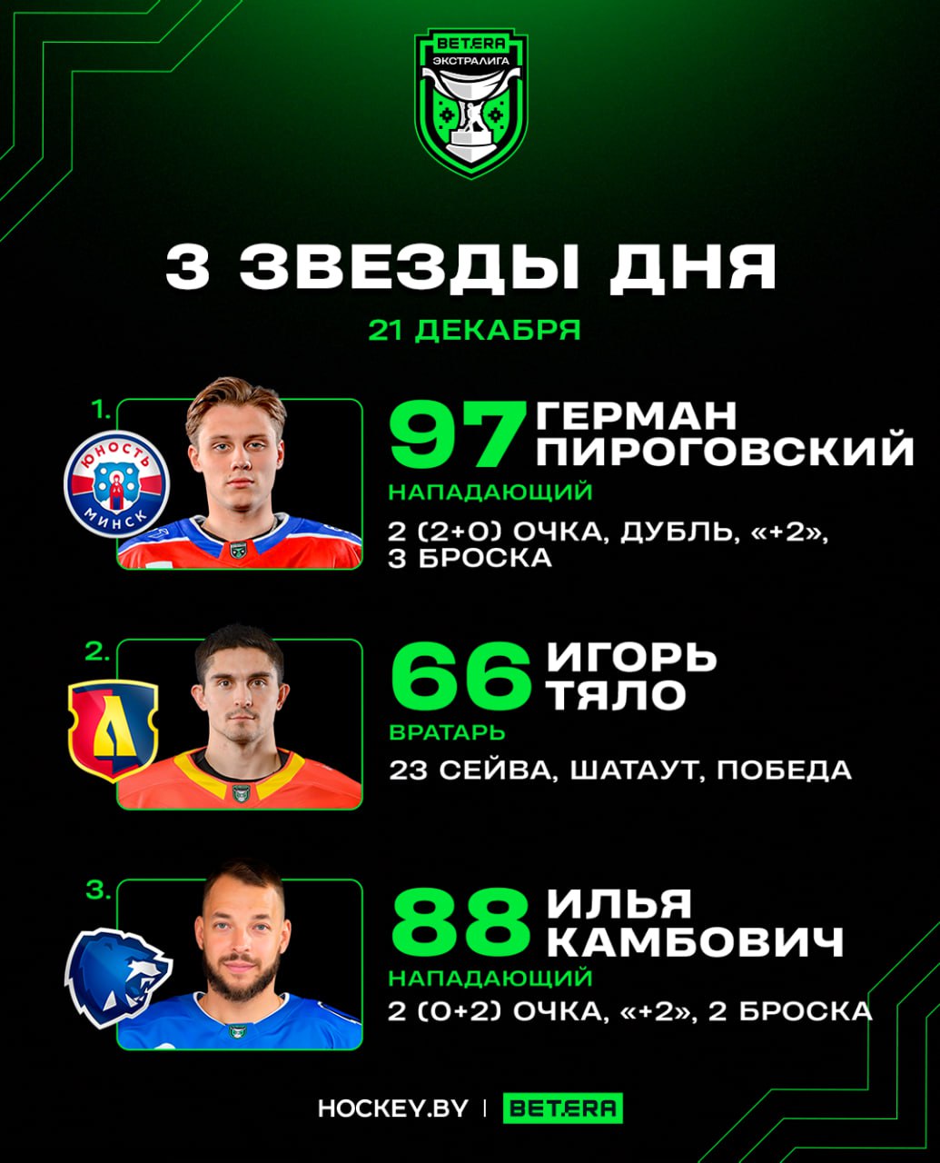 Герман Пироговский, Игорь Тяло и Илья Камбович – три звезды воскресенья в Betera-Экстралиге