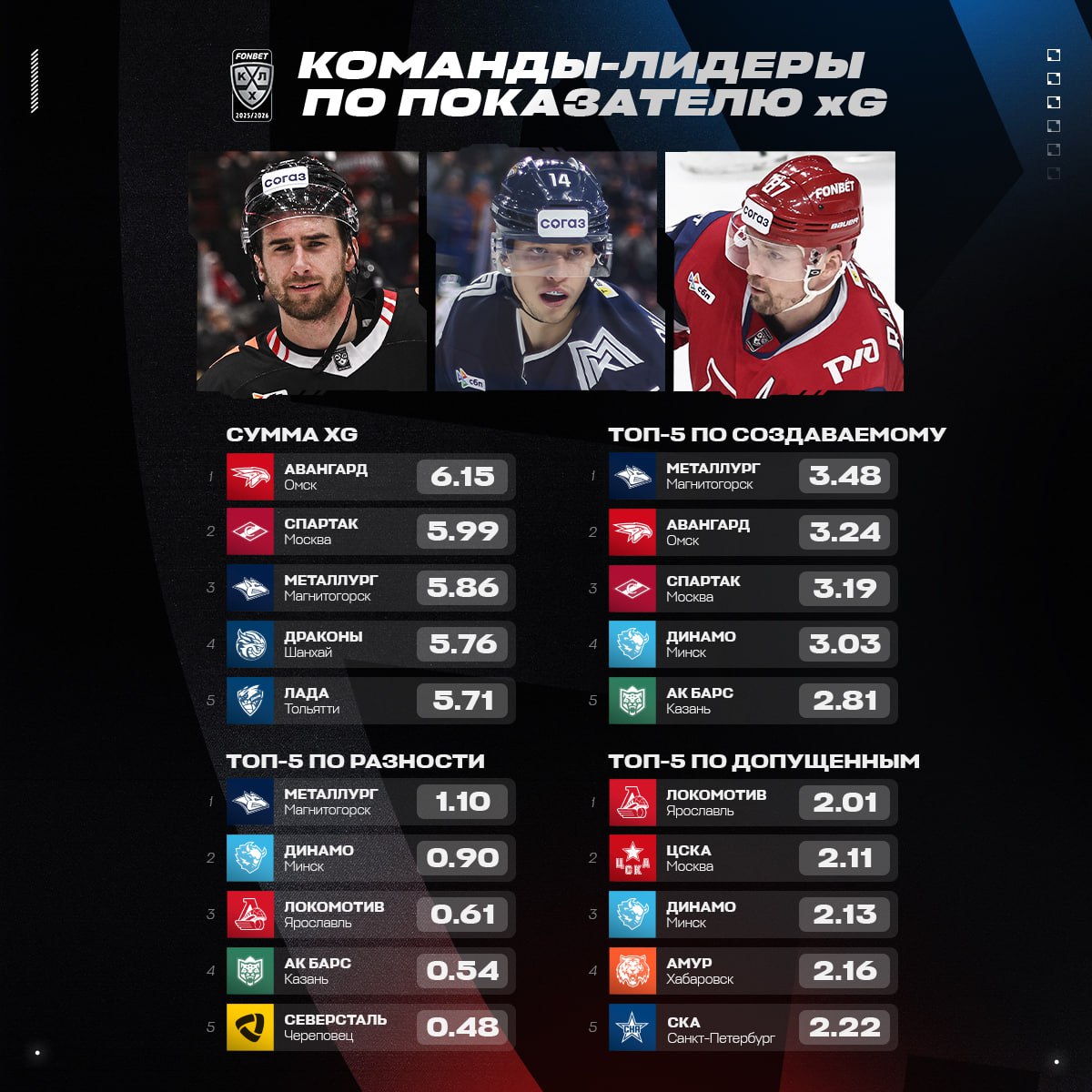 В лиге только четыре клуба держат средний уровень xG выше 4,0 за матч. Минчане находятся в этом списке наряду с магнитогорским «Металлургом», омским «Авангардом» и московским «Спартаком».