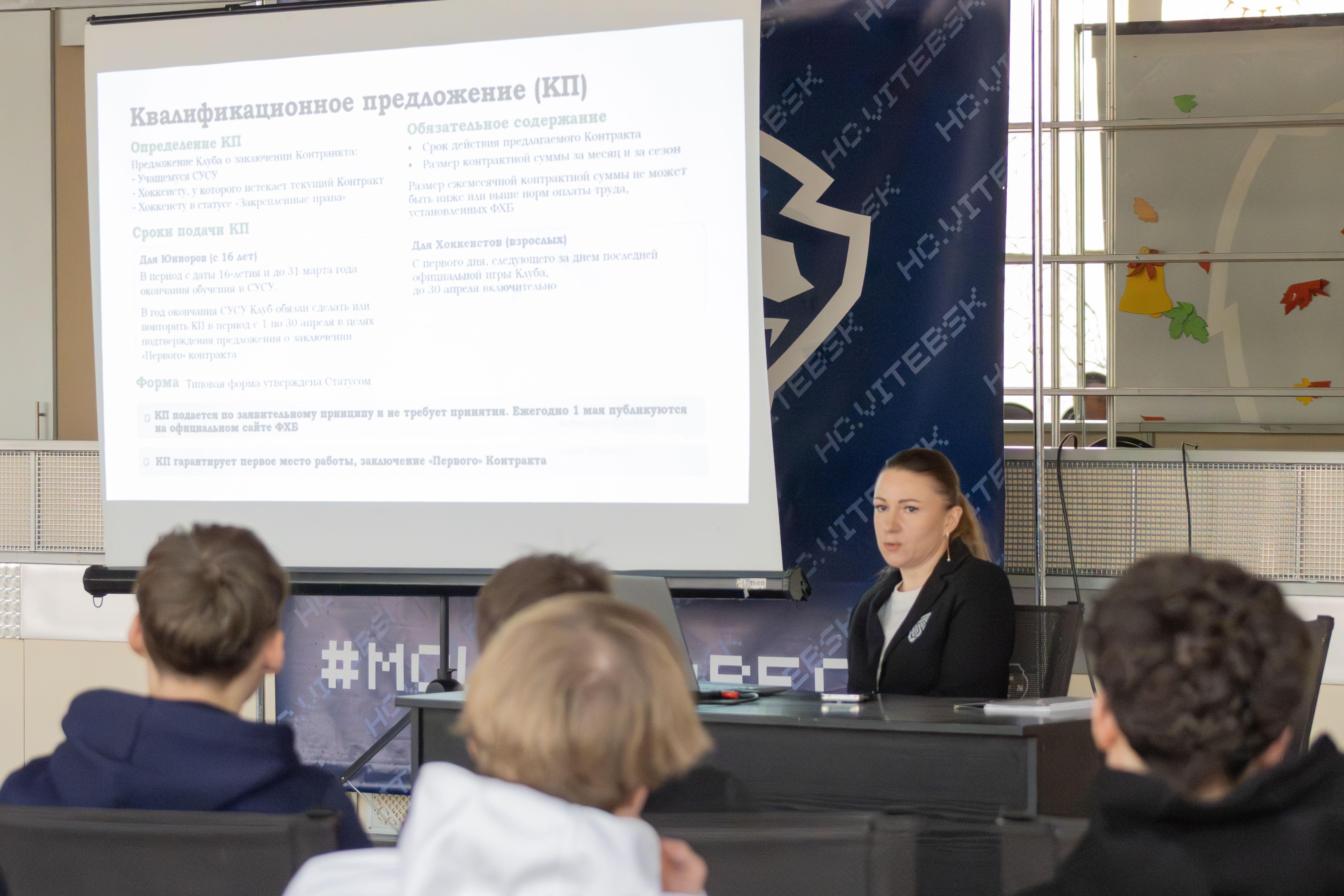 Юным хоккеистам объяснили, как правильно заключать и продлевать контракты, рассказали, какие бывают статусы у игроков и другие важные юридические нюансы профессиональной хоккейной деятельности.