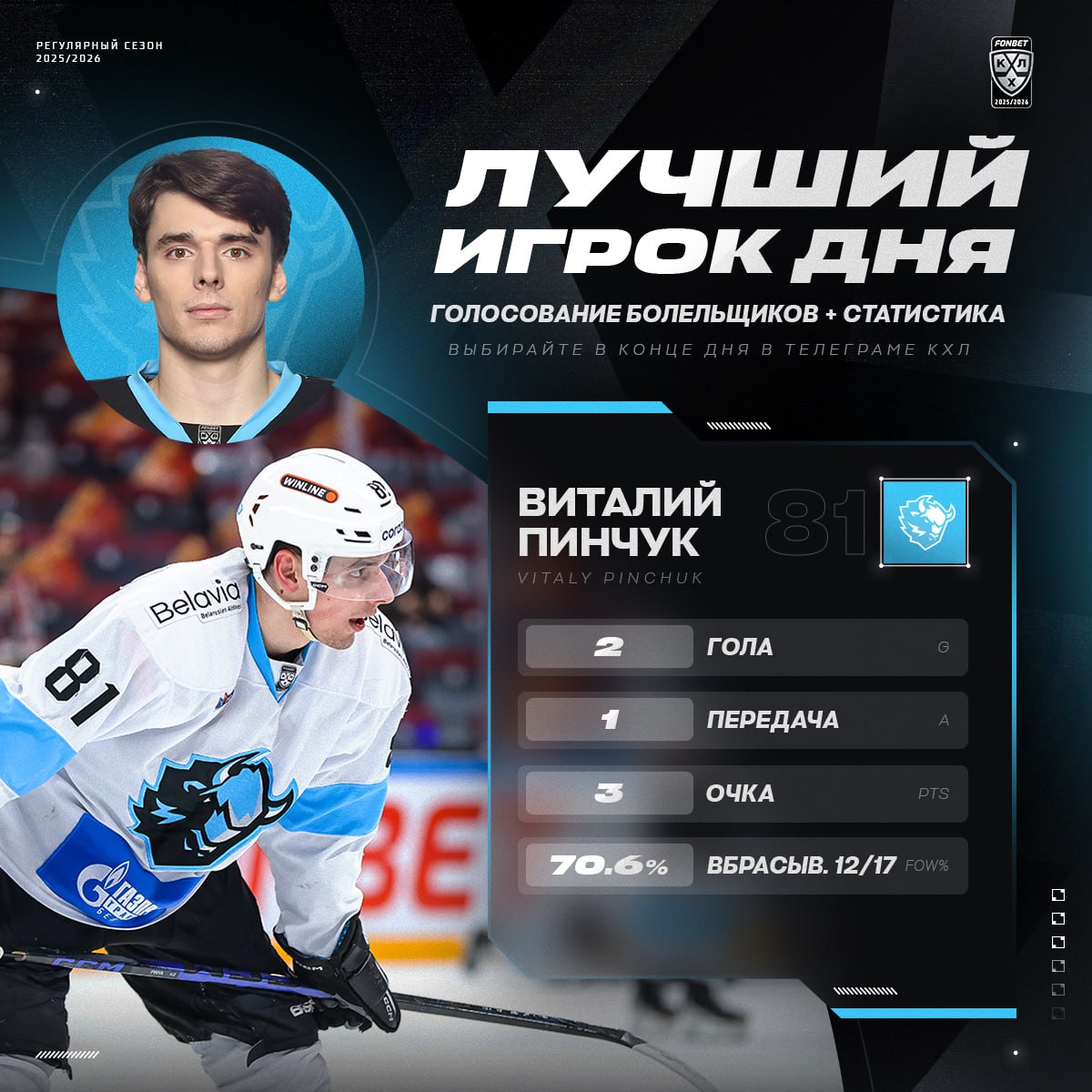 Виталий Пинчук признан лучшим игроком дня в КХЛ