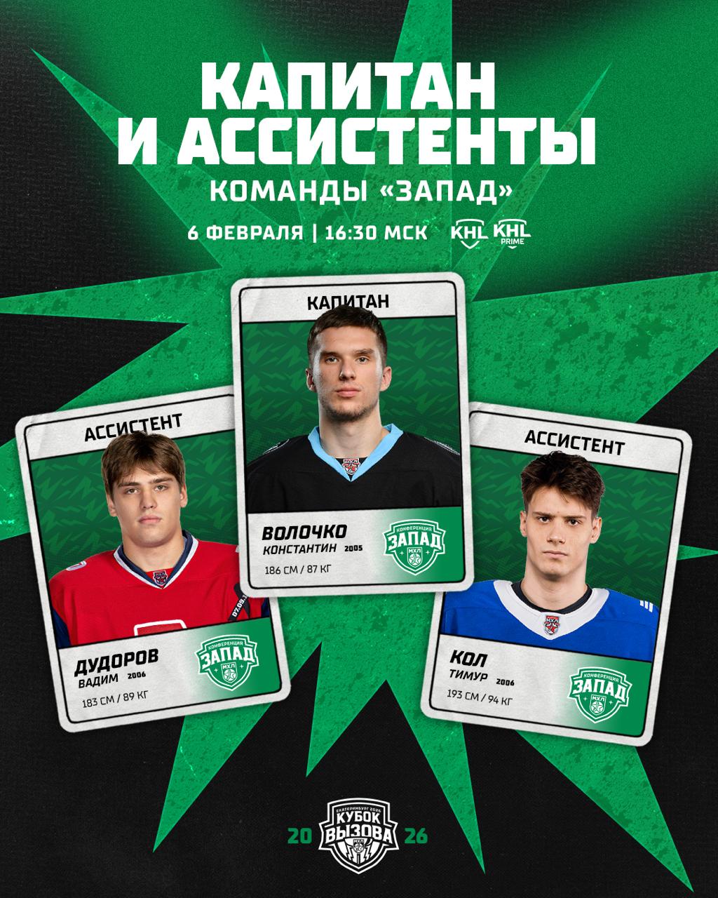 Капитаном команды Запада выбран защитник «Динамо-Шинника» Константин Волочко, который вот уже в третий раз примет участие в Кубке Вызова МХЛ. Звездный уикенд пройдет в Екатеринбурге 6 февраля.