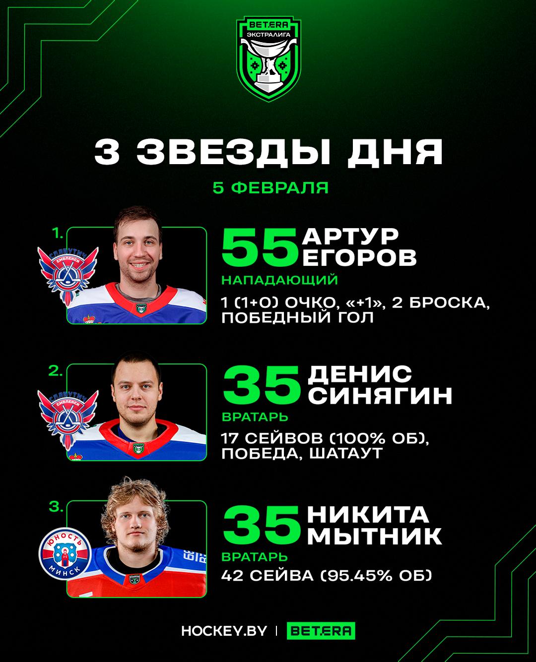 Артур Егоров, Денис Синягин, Никита Мытник – три звезды четверга в Betera-Экстралиге
