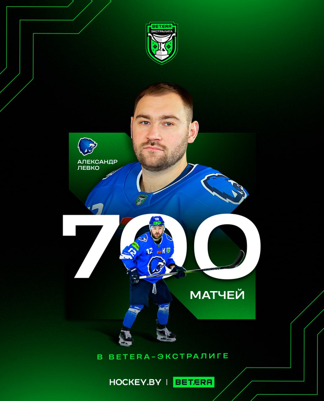 Во вчерашнем матче против «Славутича» нападающий «Витебска» Александр Левко преодолел рубеж в 700 матчей в Betera-Экстралиге.