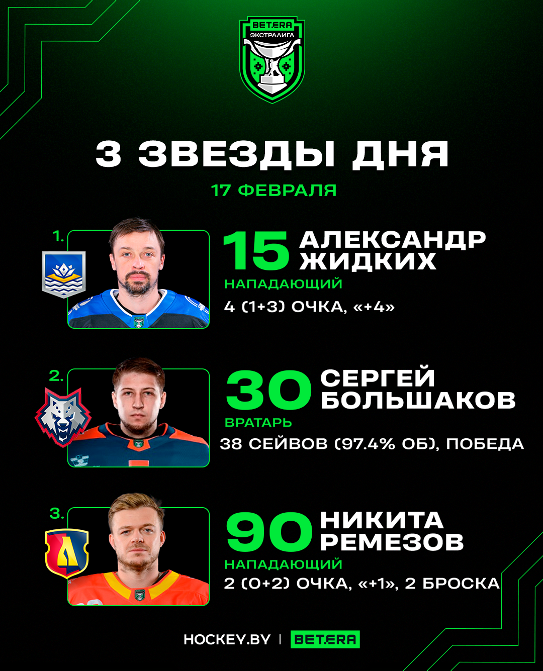 Александр Жидких, Сергей Большаков и Никита Ремезов – три звезды вторника в Betera-Экстралиге