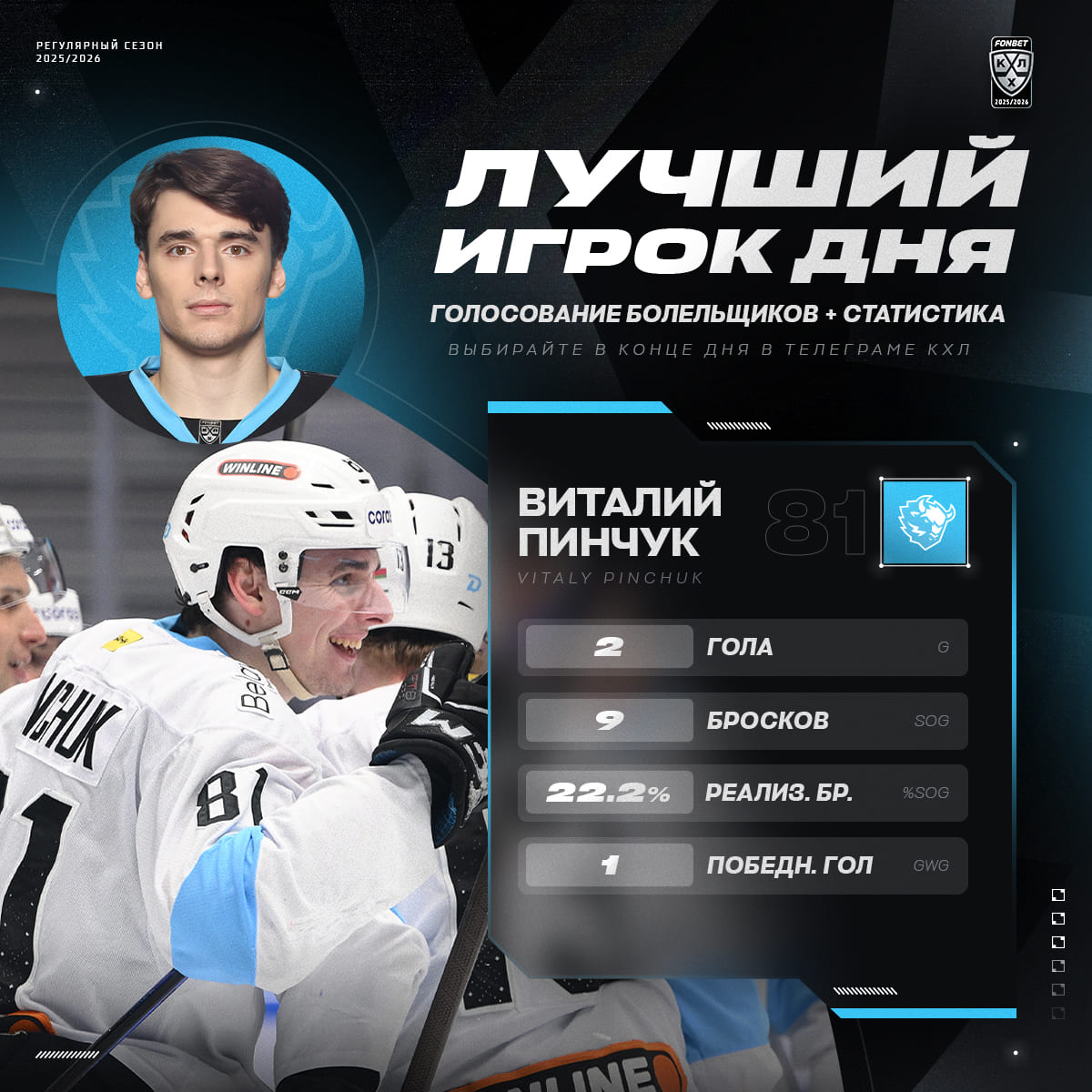 Форвард «зубров» Виталий Пинчук вернулся после повреждения и оформил шестой дубль в сезоне. Белорус девять раз бросил по воротам (второй показатель в карьере).