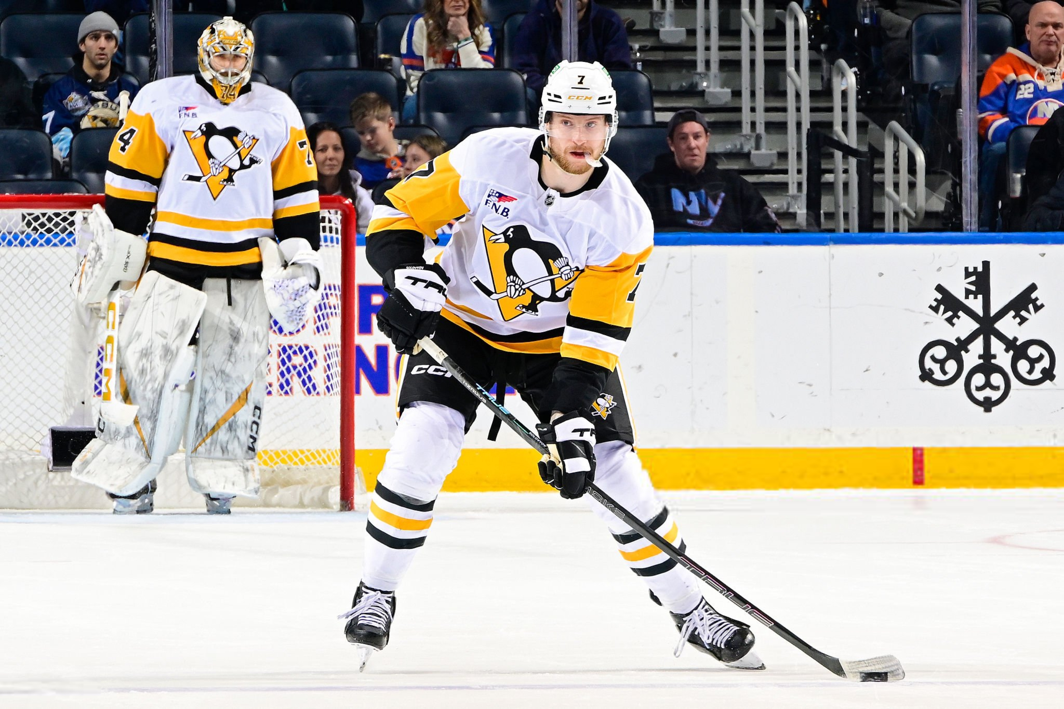Белорусский защитник «пингвинов» Илья Соловьев не был включен в заявку и пропустил вторую встречу кряду. В последний раз игрок обороны выходил на лед 6 февраля в гостевом матче против «Баффало» (5:2), где отметился результативной передачей на гол Эйвери Хейза.