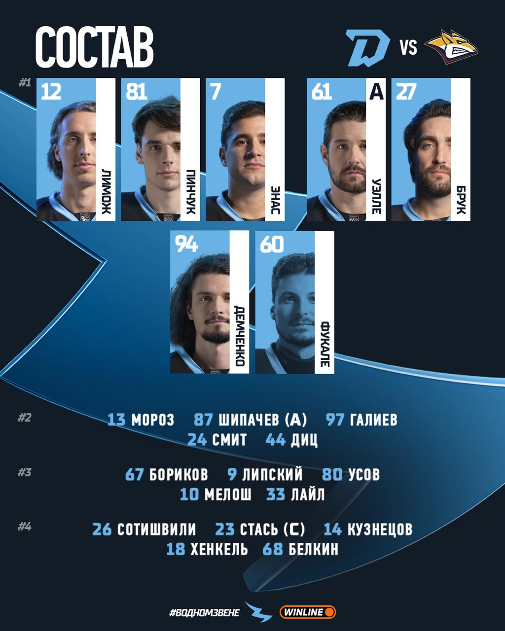 МЕТАЛЛУРГ: Смолин (Набоков); Пресс – Маклюков (К), Канцеров – Ткачев (А) – Козлов; Яковлев – Сиряцкий, Барак – Толчинский – Вовченко; Хабаров – Минулин, Михайлис – Исхаков – Петунин; Федоров – Коробкин – Коротков; Паливко, Джонсон (А).