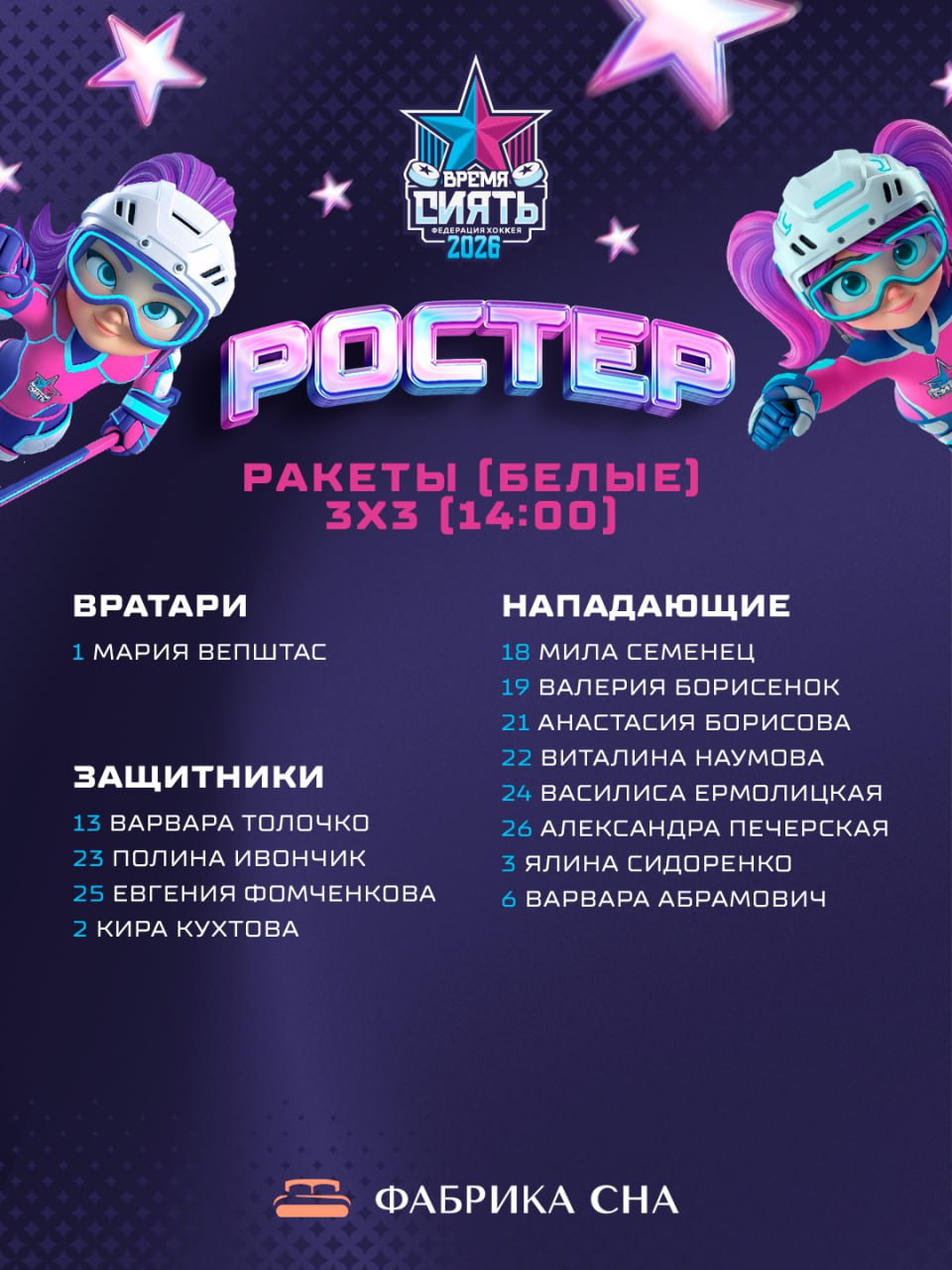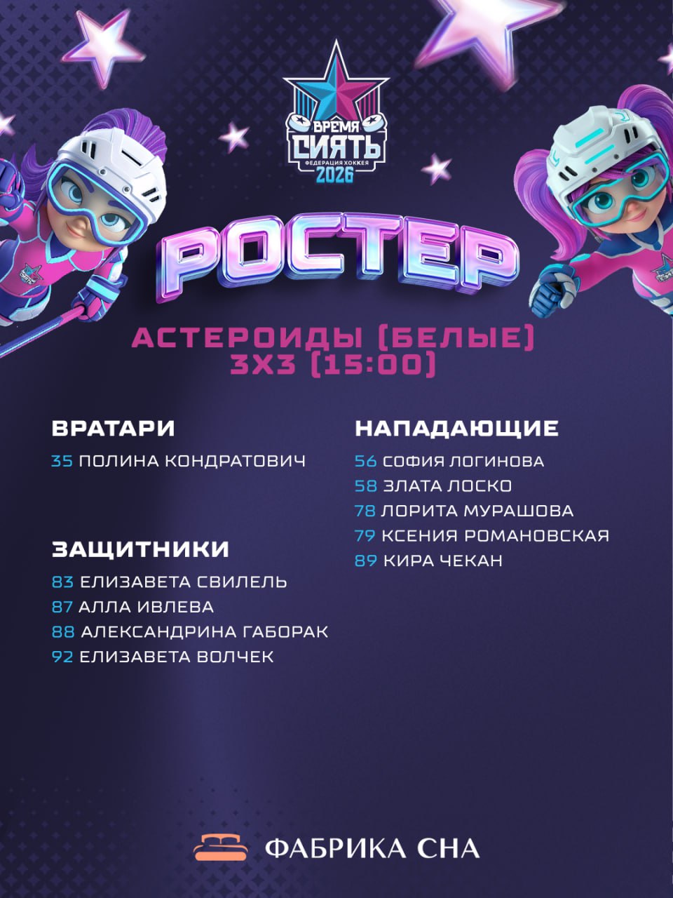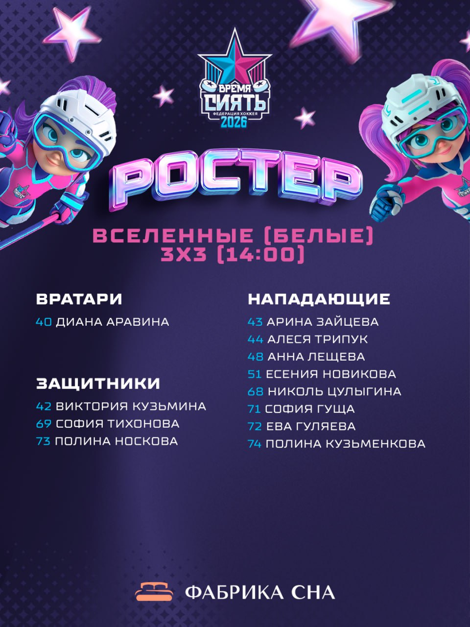 Стали известны ростеры команд «Белых» на Всемирный женский хоккейный матч