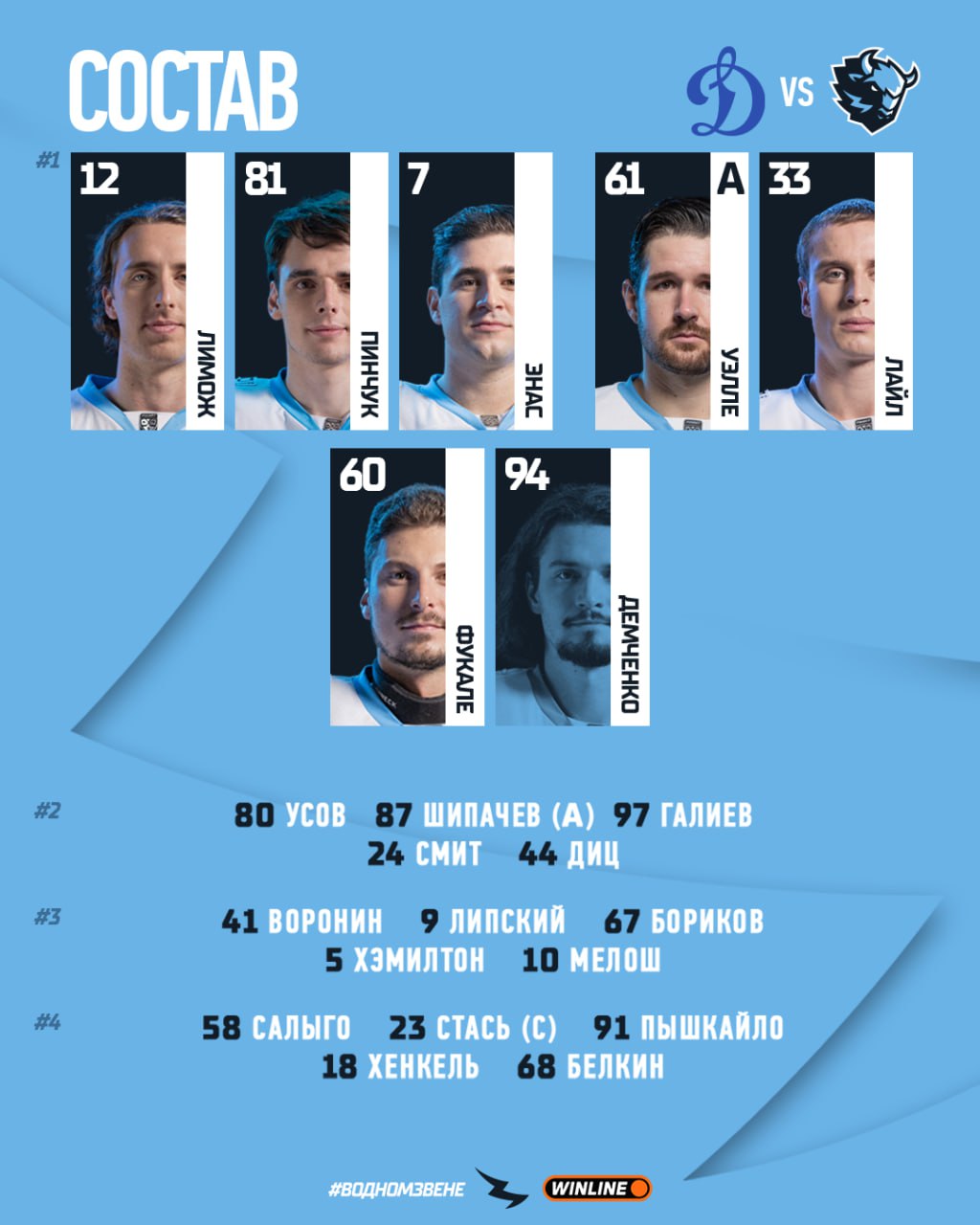 ДИНАМО Мн: Фукале (Демченко); Лайл – Уэлле (А), Лимож – Пинчук – Энас; Диц – Т.Смит, Усов – Шипачев (А) – Галиев; Мелош – Хэмилтон, Воронин – Д.А.Липский – Бориков; Салыго – Стась (К) – Пышкайло; Хенкель, Белкин.