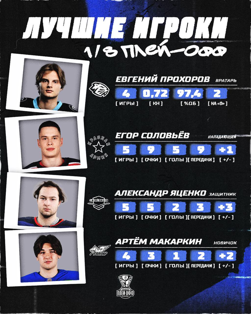 Молодежная хоккейная лига представила лучших игроков первого раунда плей-офф в сезоне 2025/26.